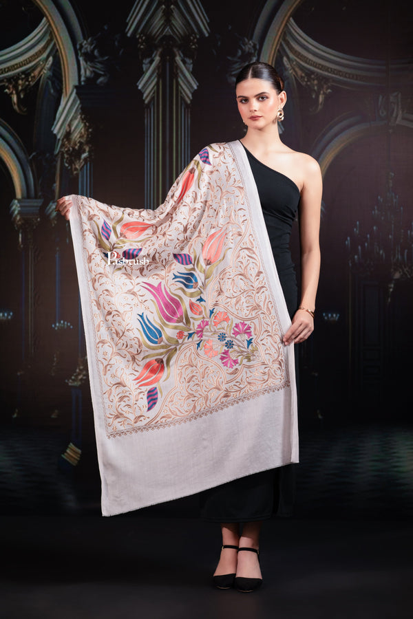 Pashtush Tres Chic Regal Collection, Floral Embroidery, Extra Soft Fine Wool Stole, Scarf, Soft Pink