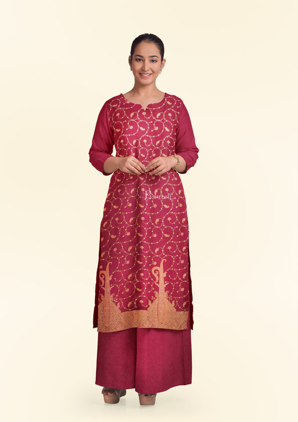 Pashtush Unstitched Kashmiri Embroidery 2-Piece Suit, Fine Wool, Soft and Warm, Maroon