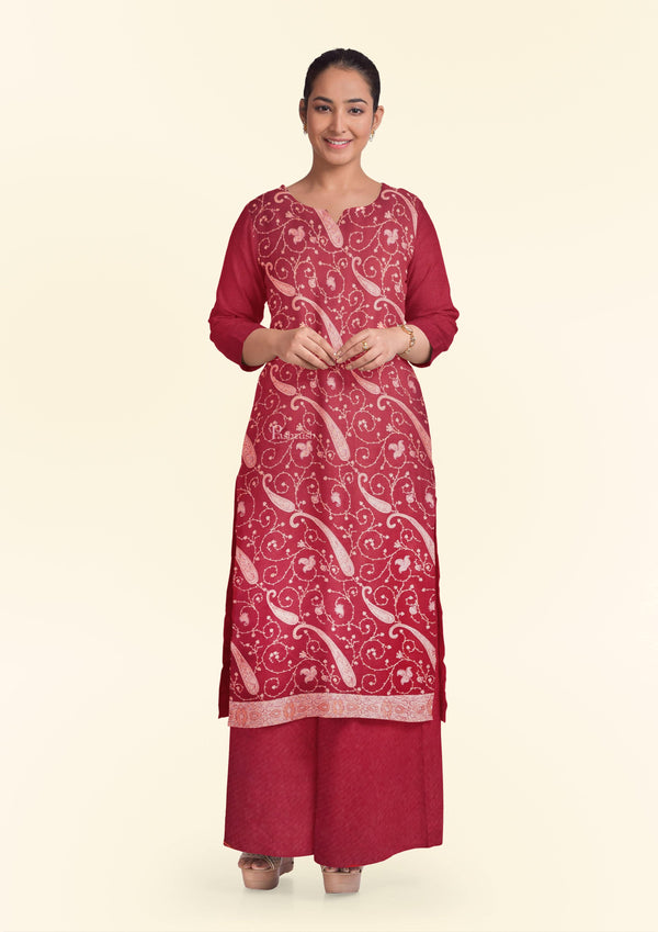Pashtush Unstitched Kashmiri Embroidery Suit with shawl, Fine Wool, Soft and Warm, Maroon