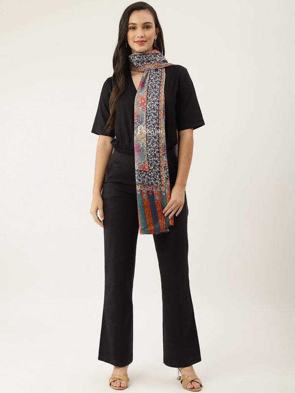 Pashtush women Fine Wool shawl, Hand Embroidered Kalamkari design, Multicolour