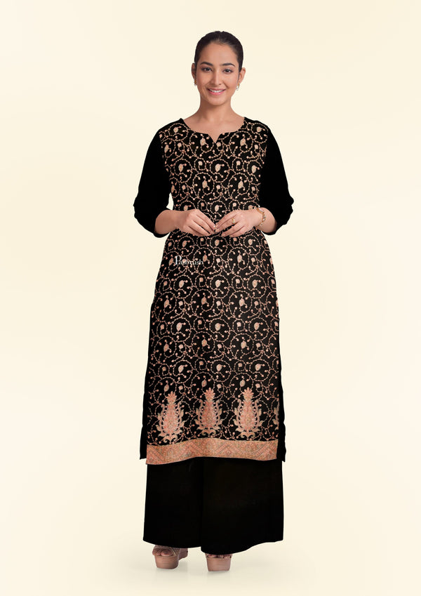 Pashtush women Fine Wool suit with shawl, Kashmiri Embroidery design, Black