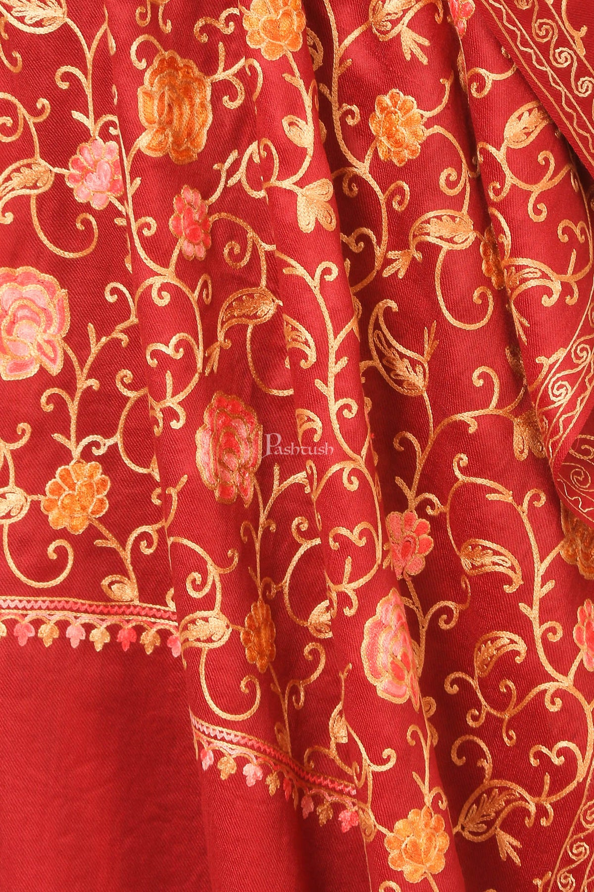 Pashtush Aari Embroidery Stole, Fine Wool, Maroon