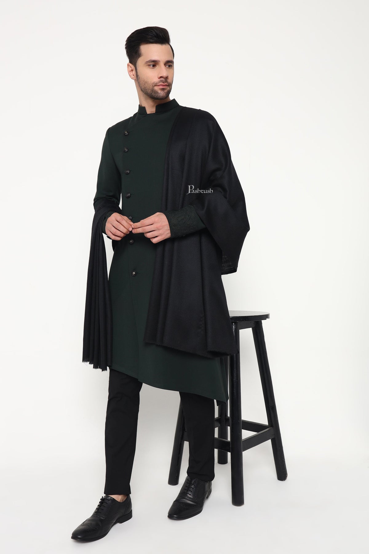 Pashtush India Mens Shawls Gents Shawl Pashtush Mens Fine Wool Shawl, Paisley Design, Black