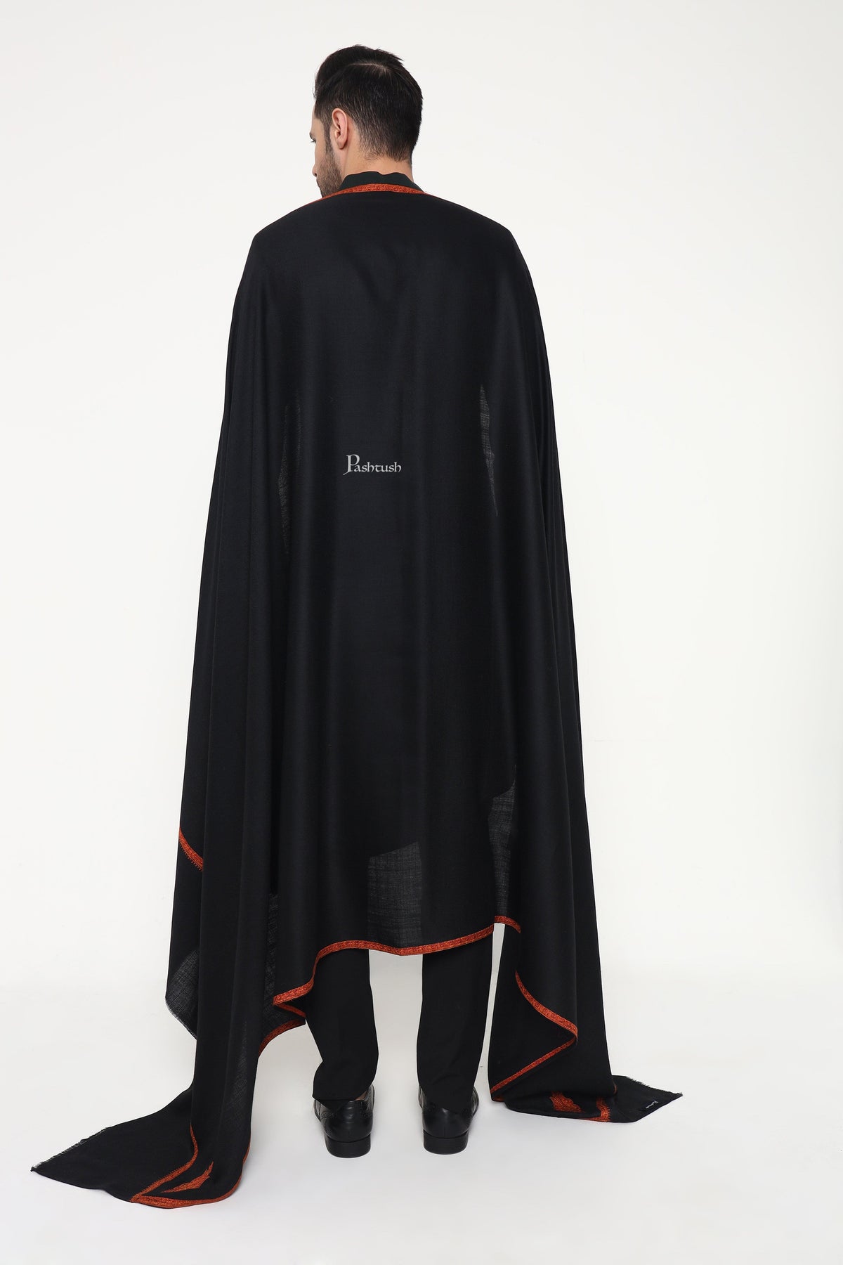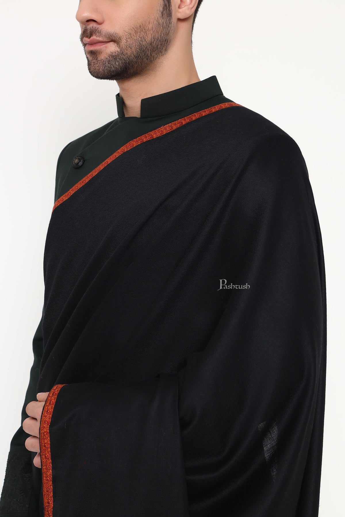 Pashtush India Mens Shawls Gents Shawl Pashtush Mens Fine Wool Shawl, Paisley Design, Black