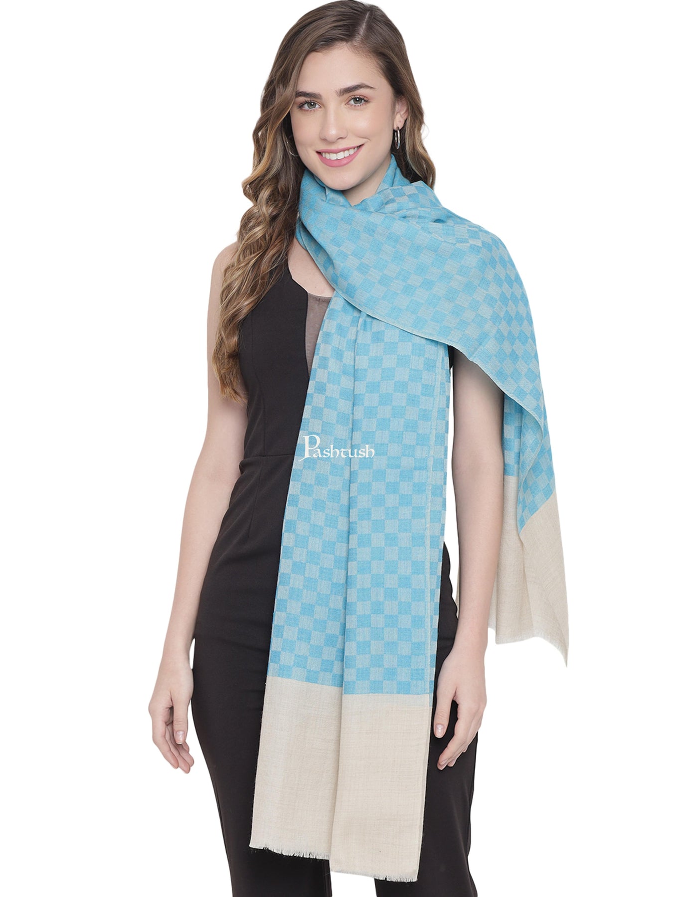 Pashtush Womens, Fine Wool, Checkered Stole, Blue