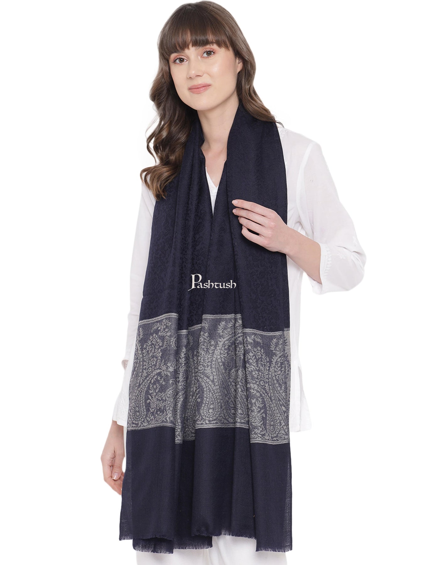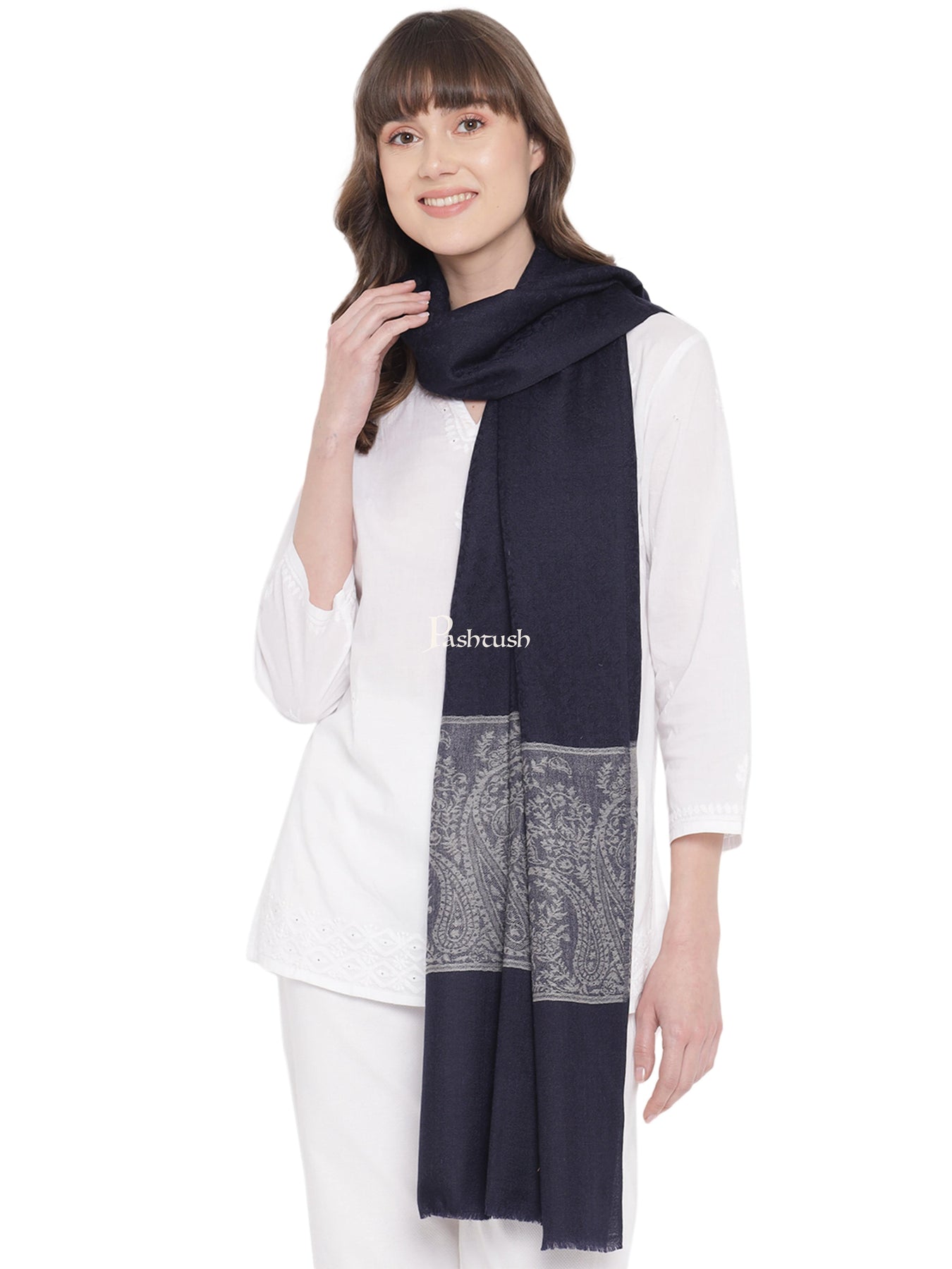 Pashtush Womens Self Stole, Fine Wool, Paisley Palla Weave, Navy Blue