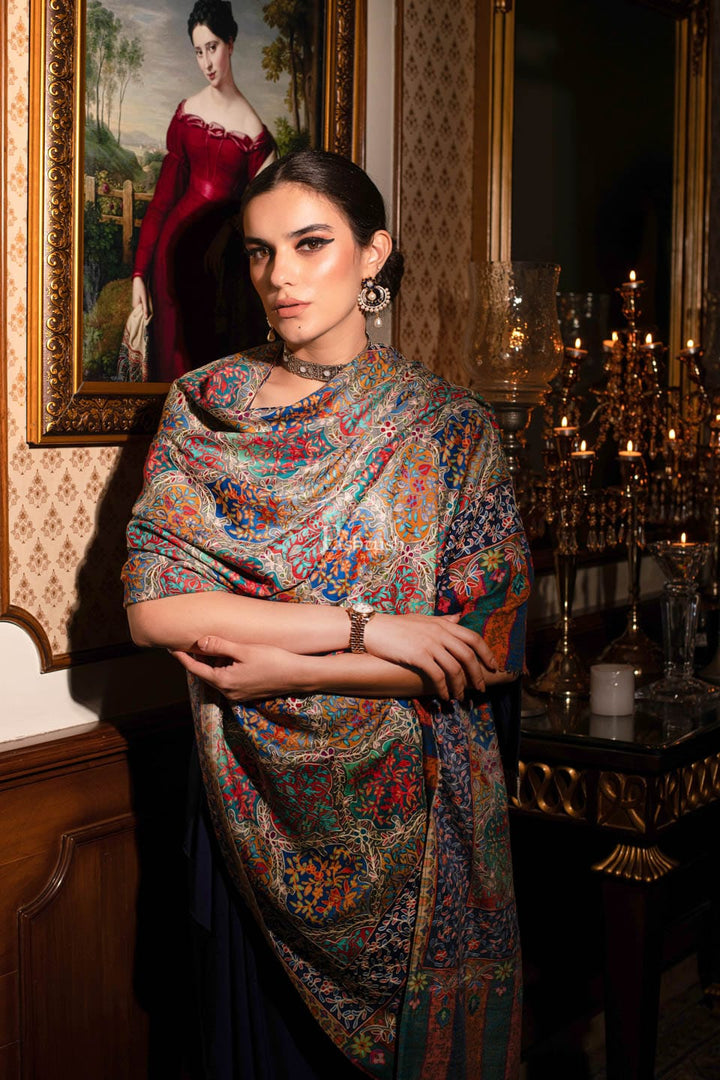 Pashtush womens Fine Wool shawl, nalki embroidery design, Multicolour