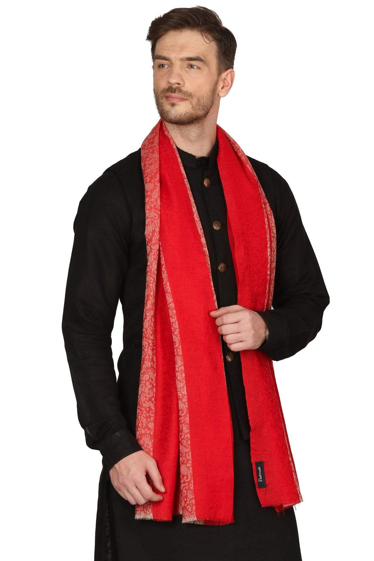 Pashtush Mens Fine Wool Reversible Muffler, Soft And Warm - Red