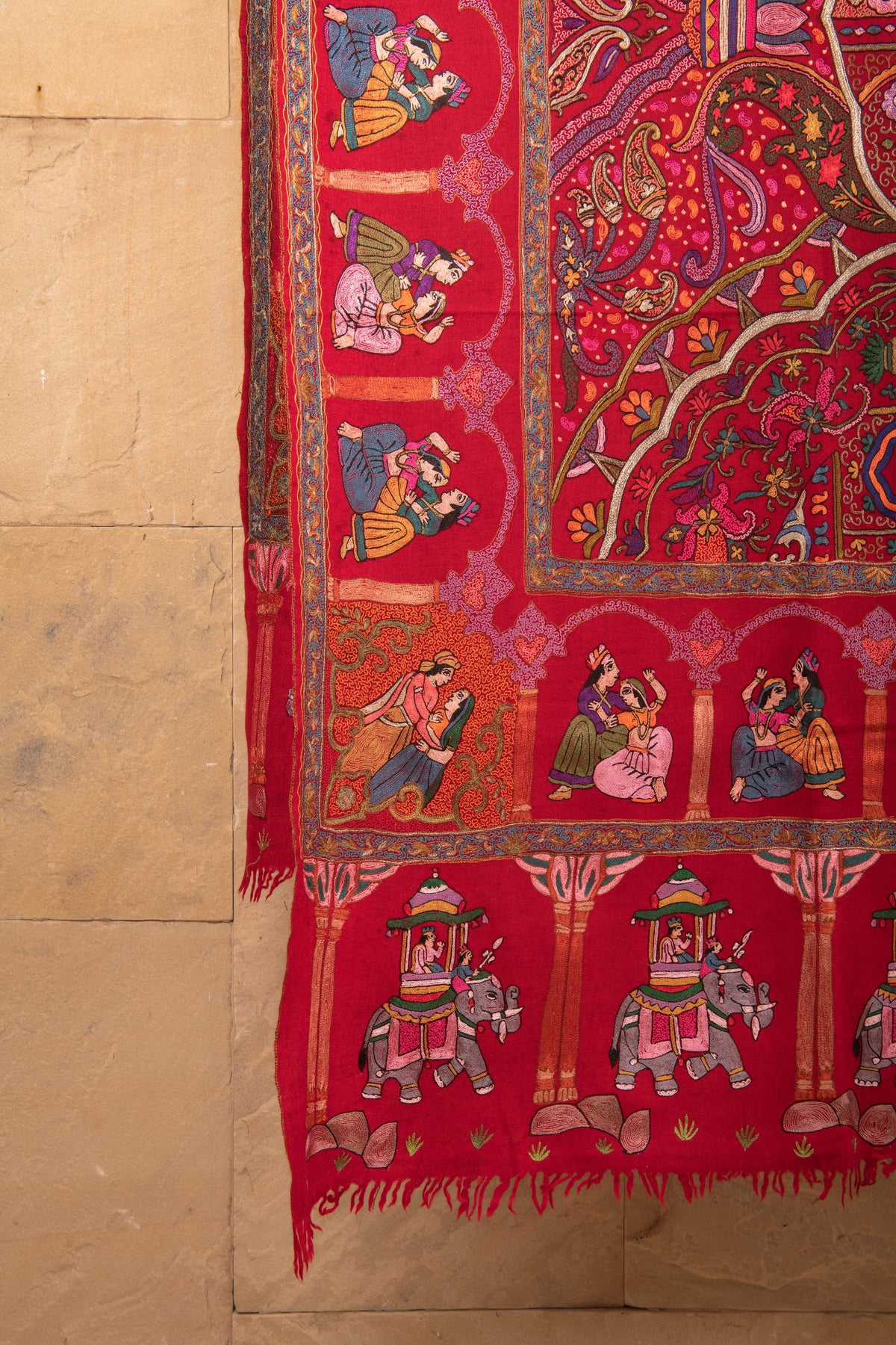 Pashtush Bridal Pure Pashmina Shawl – Maroon Kalamkari Aari Hand-Embroidered Masterpiece