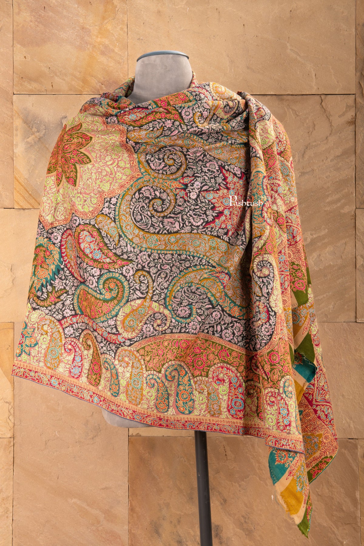 Pashtush Pure Pashmina Shawl for Women , Kalamkari with Papier-mâché Kashmiri Embrodiery, Multicoloured