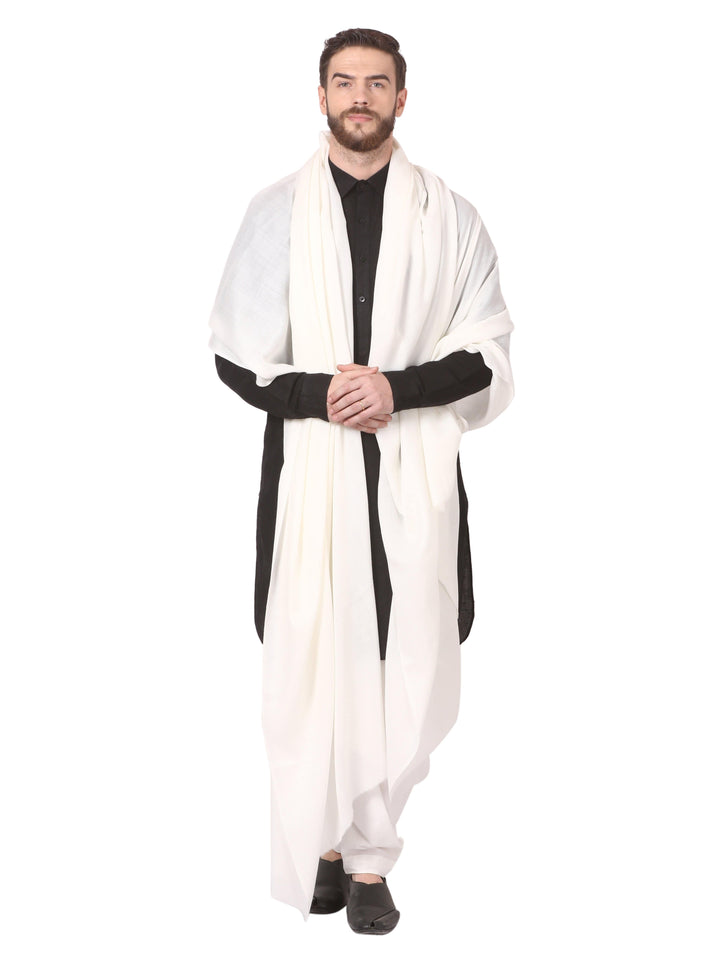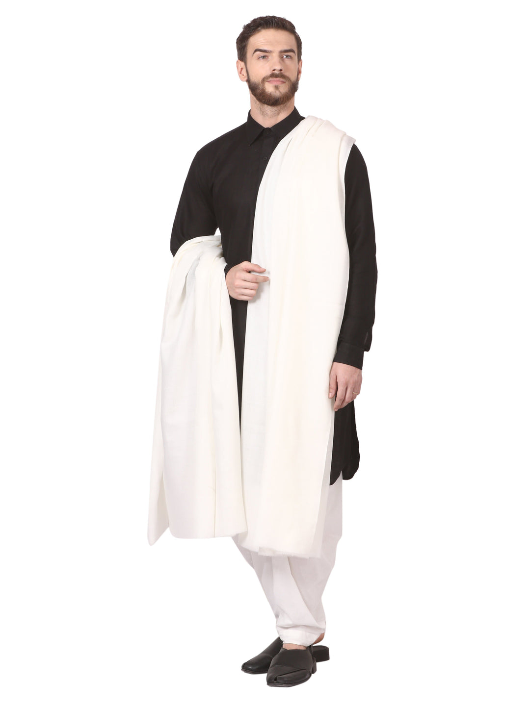 Pashtush Mens Blended Wool Ring Shawl, Blended Wool, Light Weight,White