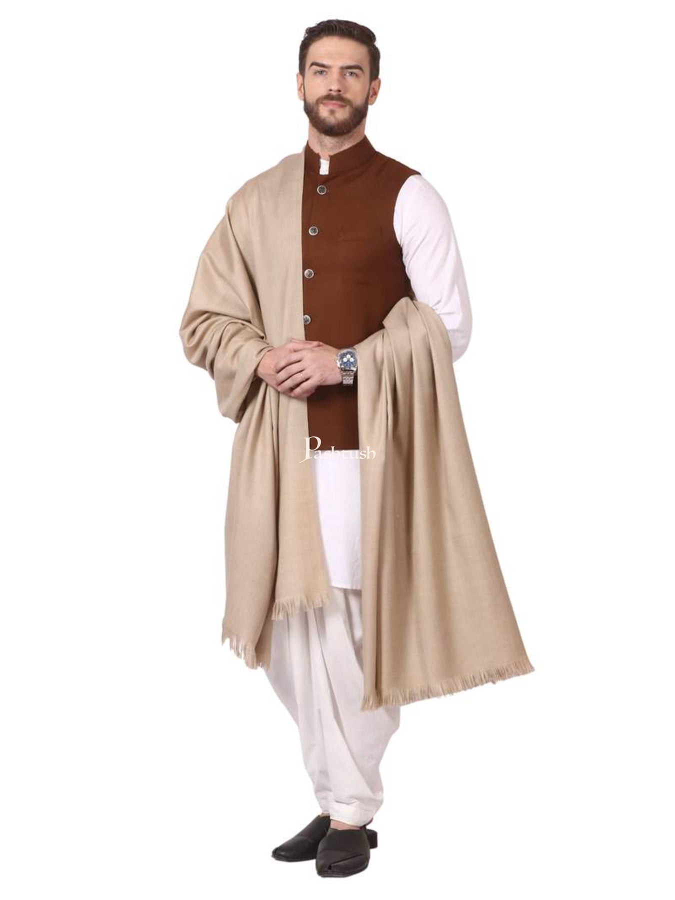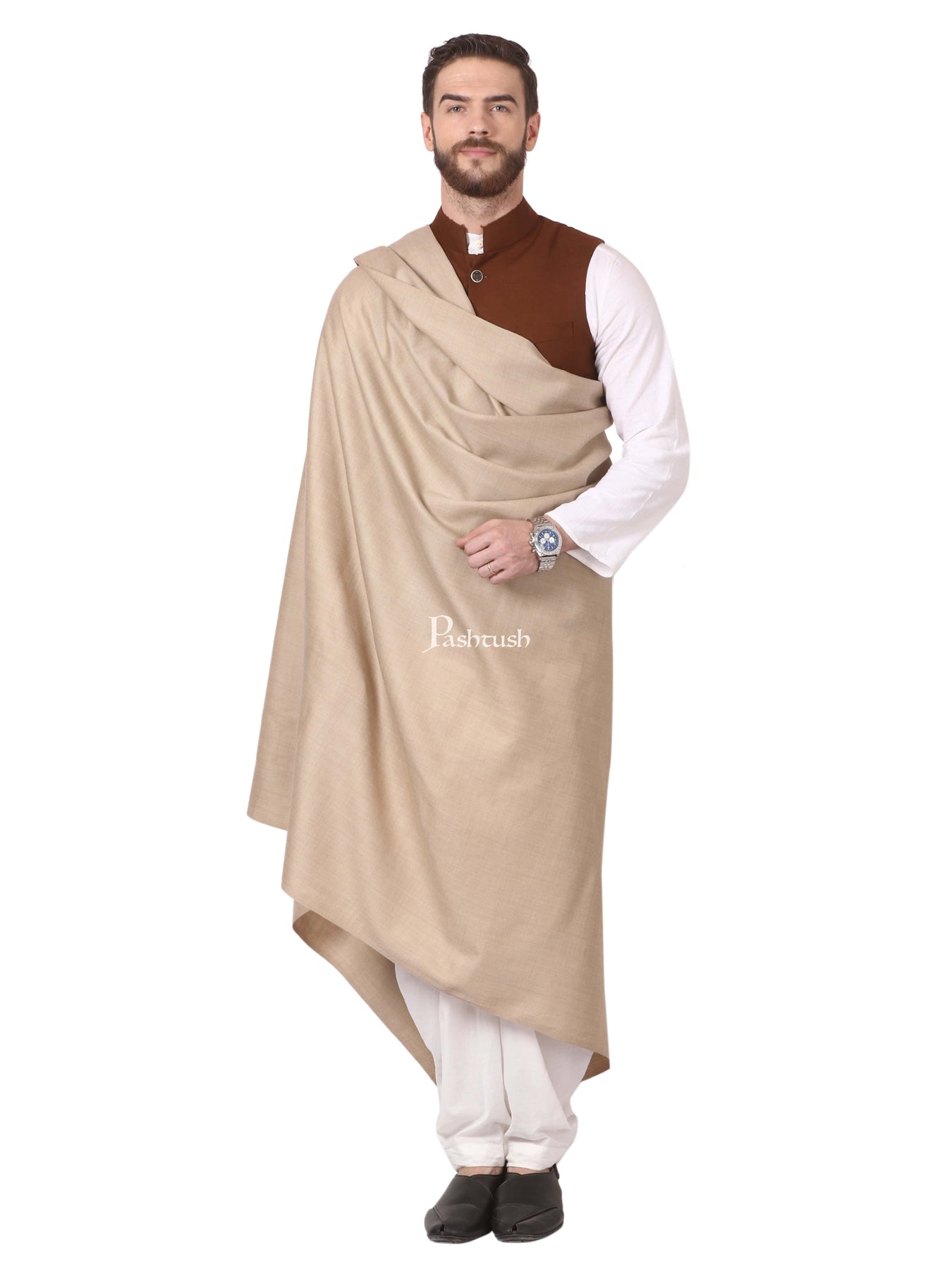Pashtush Mens Lohi, Thick And Warm Gents Shawl, 50% Pure Wool, Beige