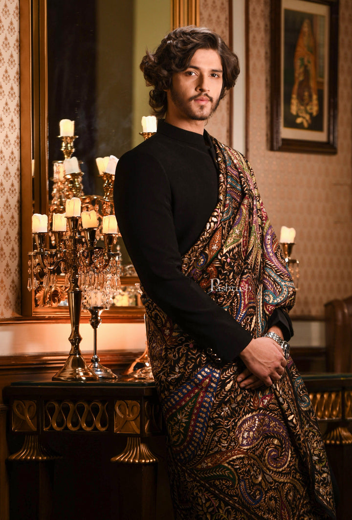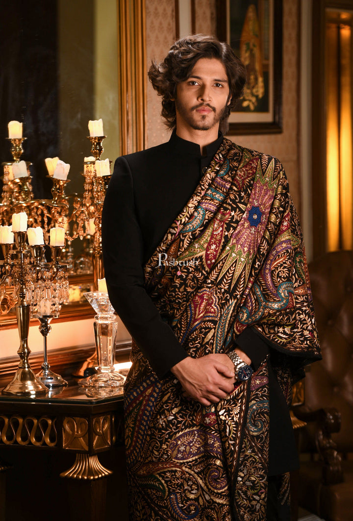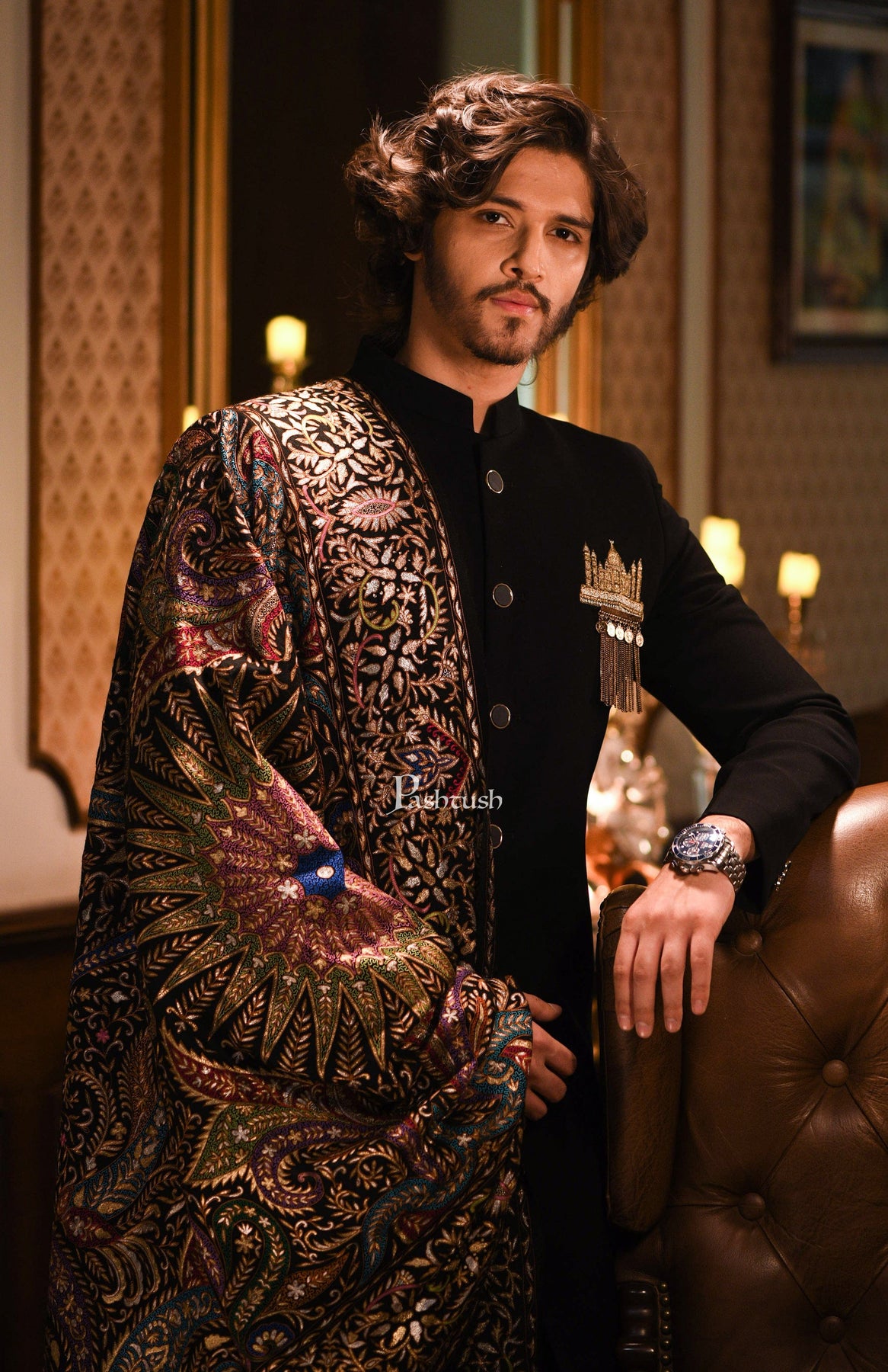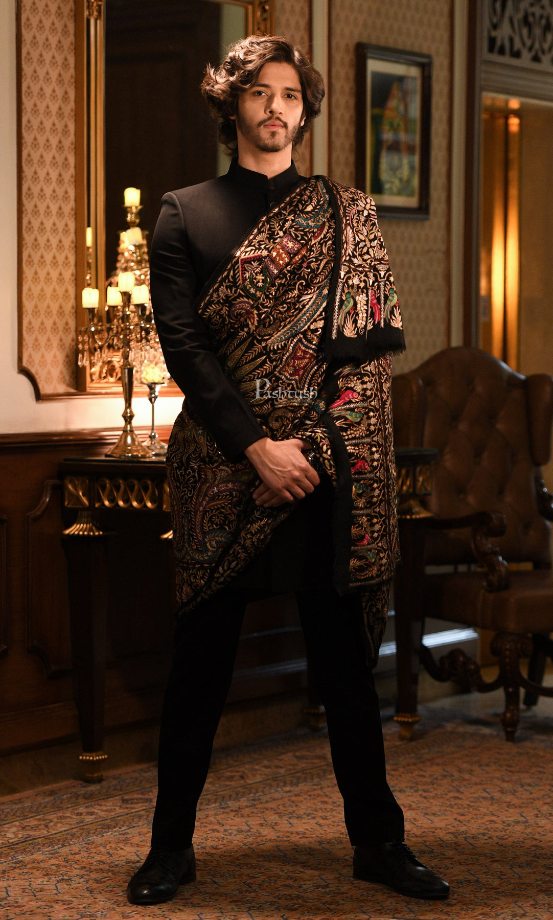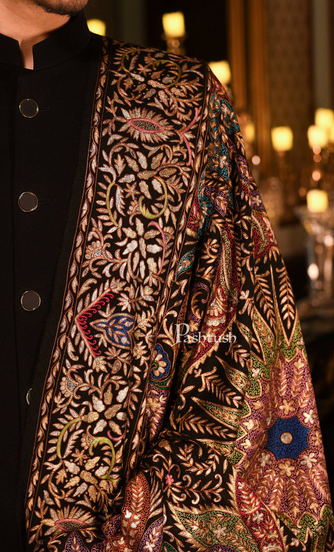 Pashtush Men's Pashmina Shawl, Kashmiri Tilla Work, Handloom, Medium Size