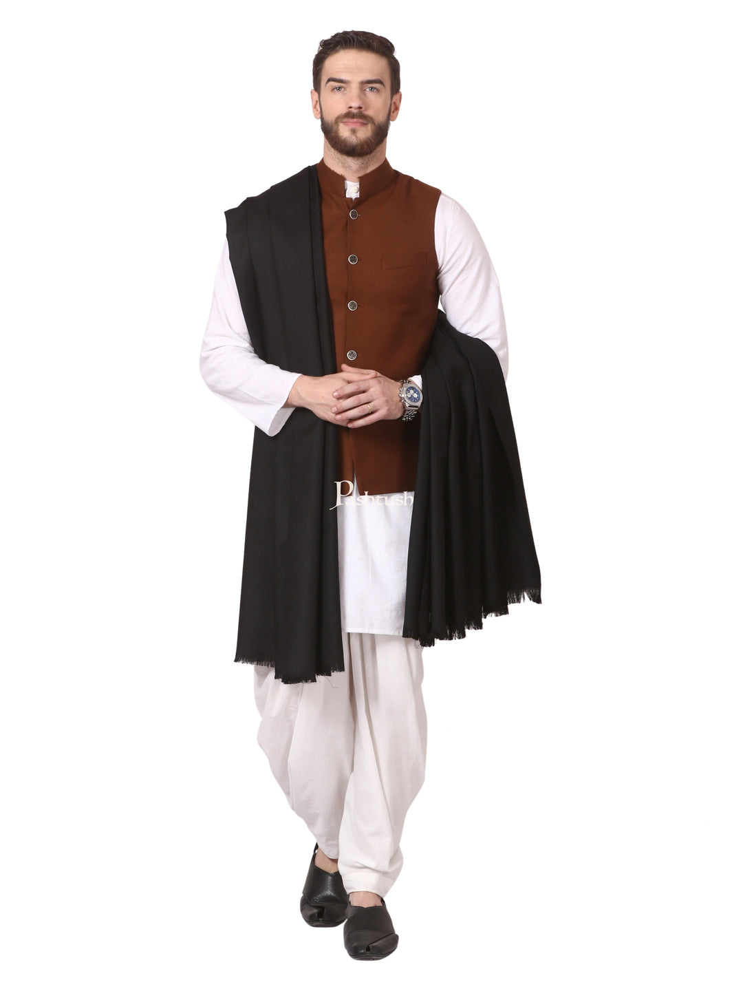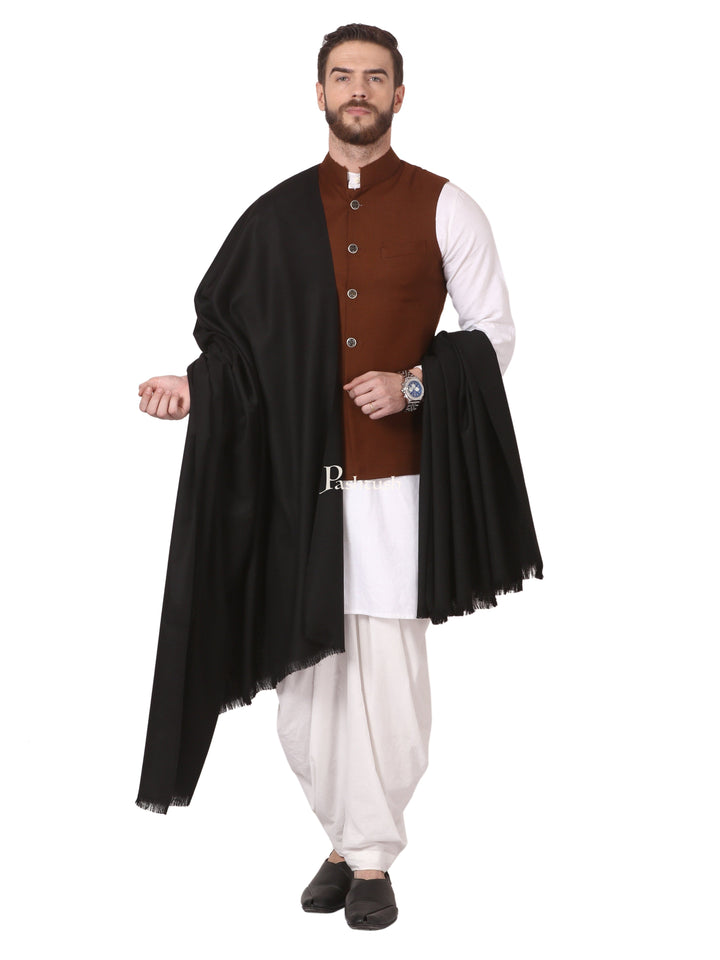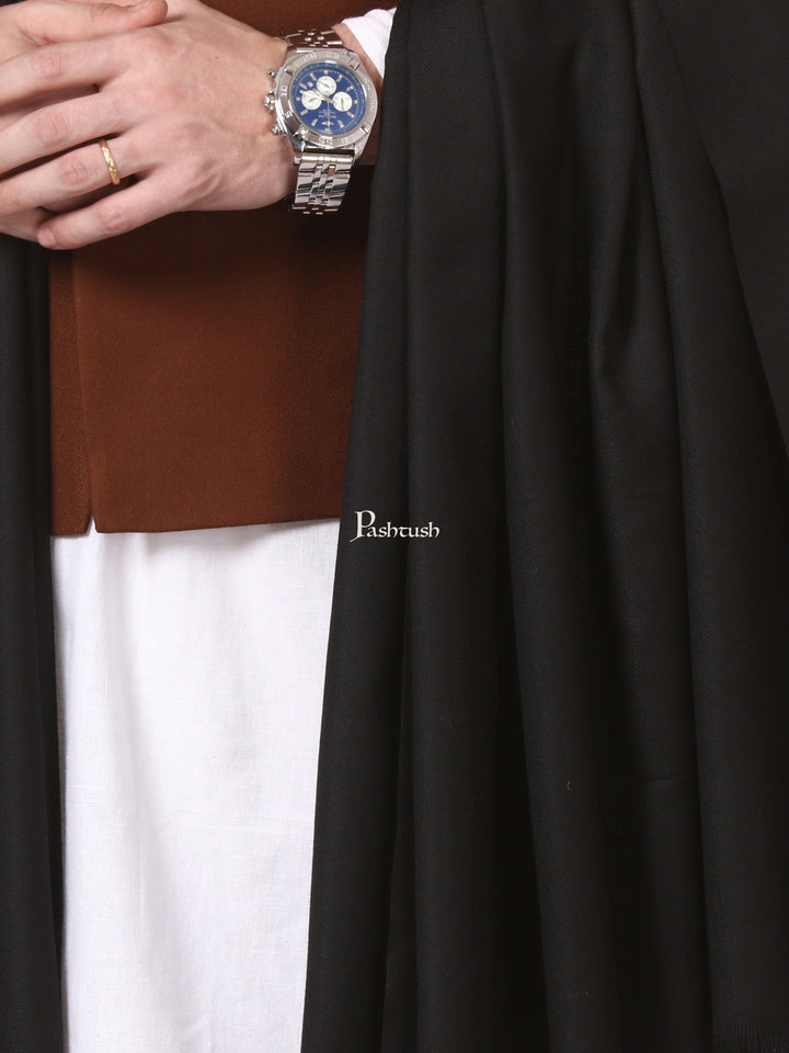 Pashtush Mens Shawl, Thick Lohi, 50% Australian Merino Wool, Black