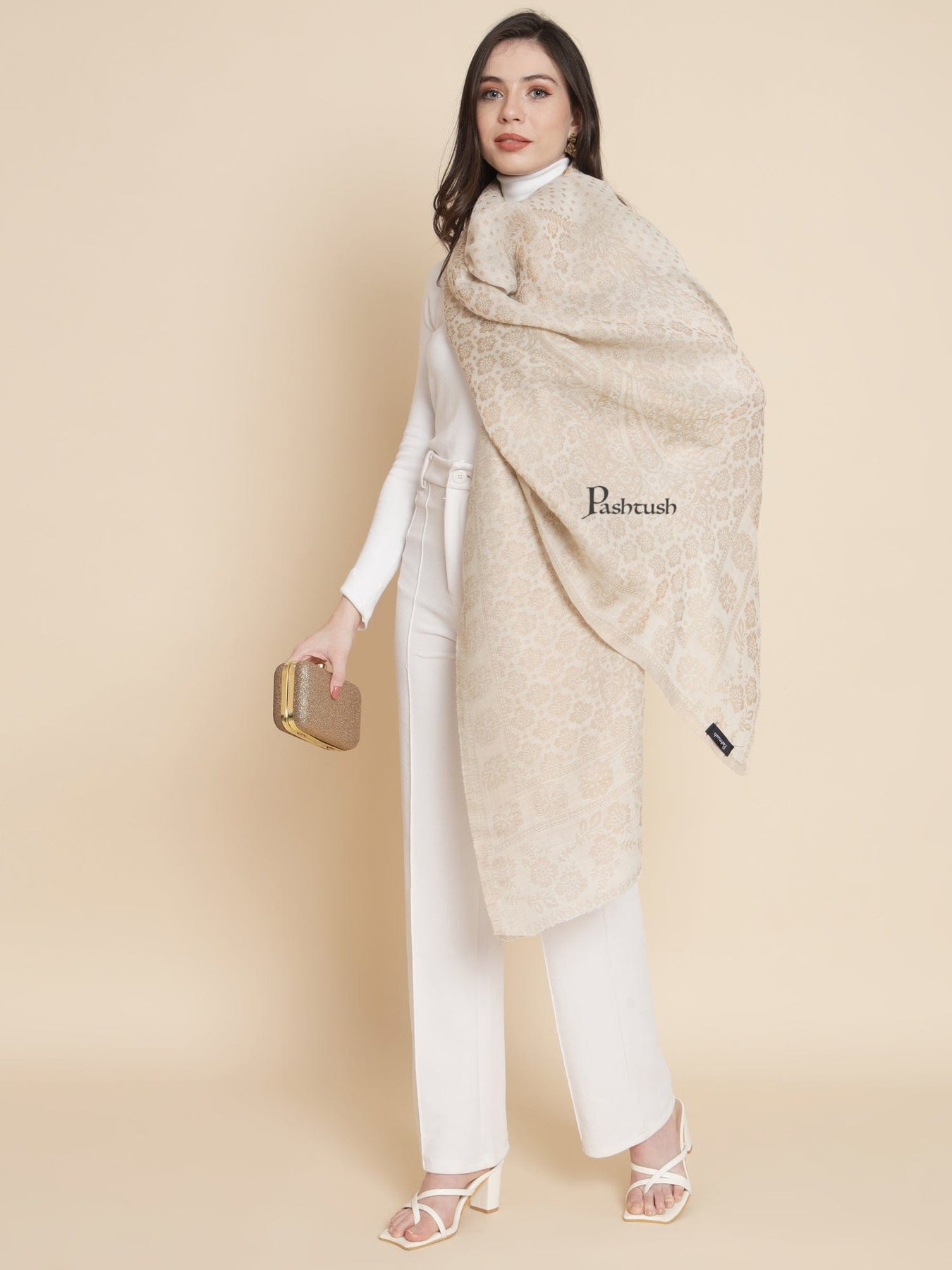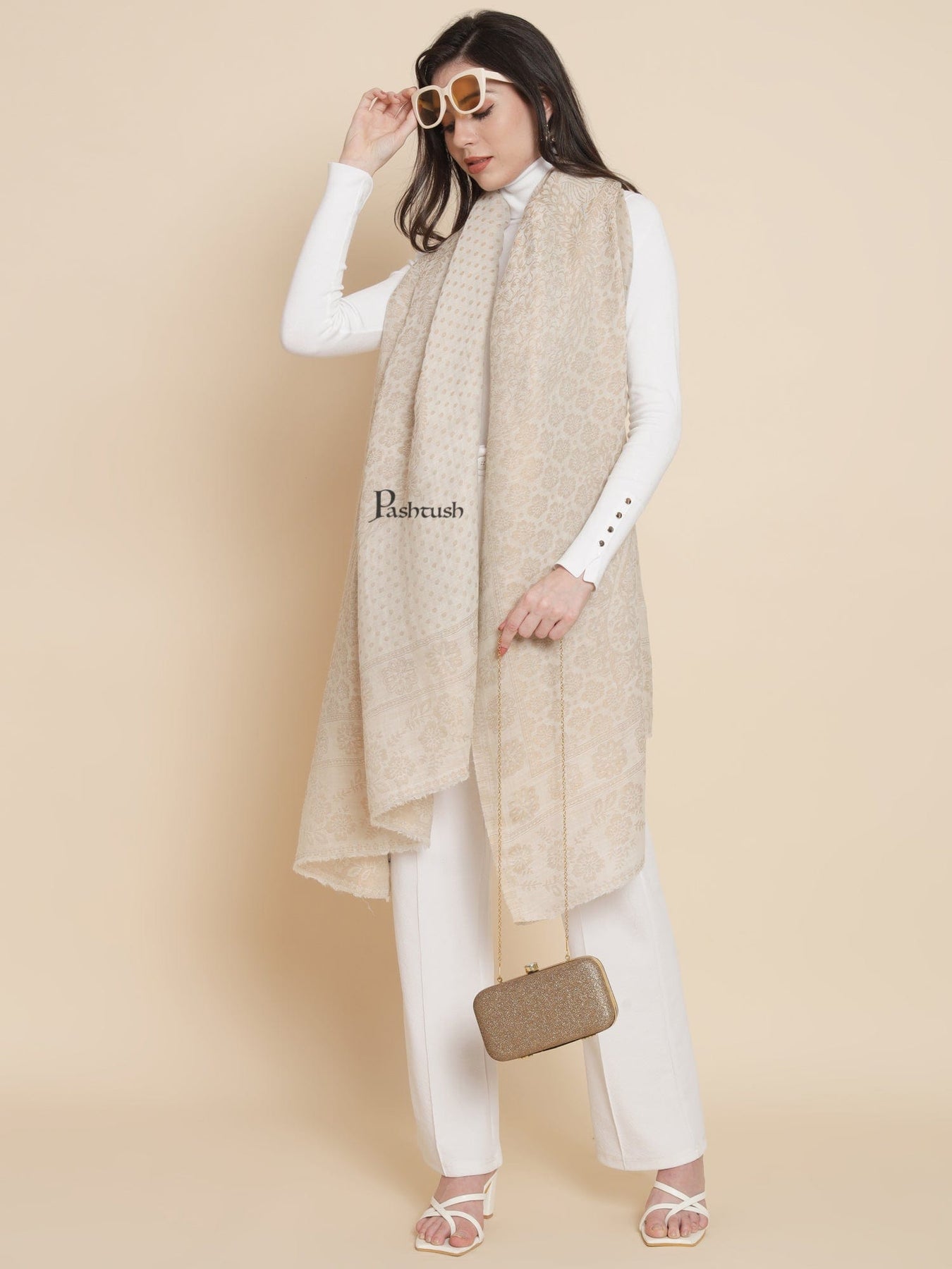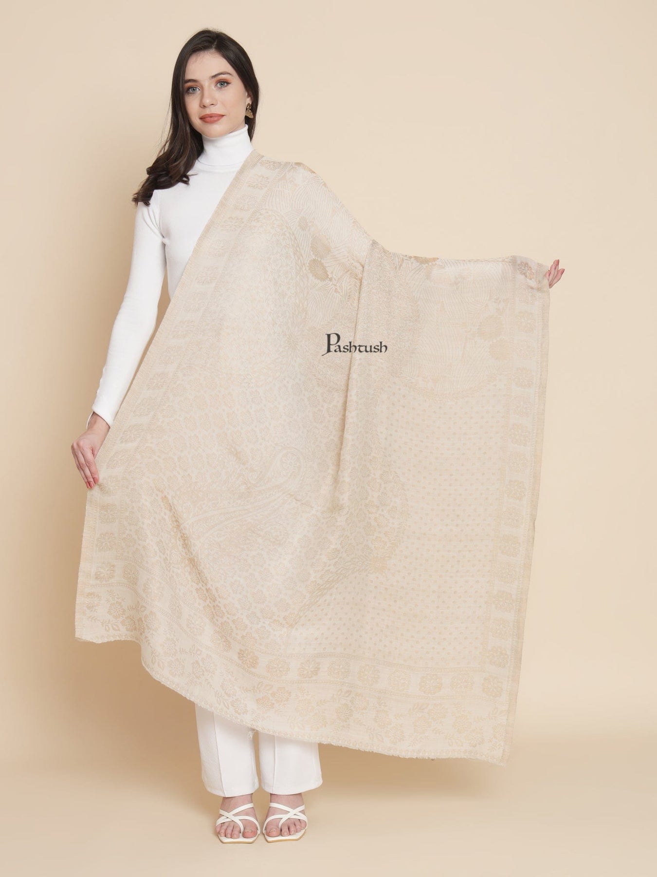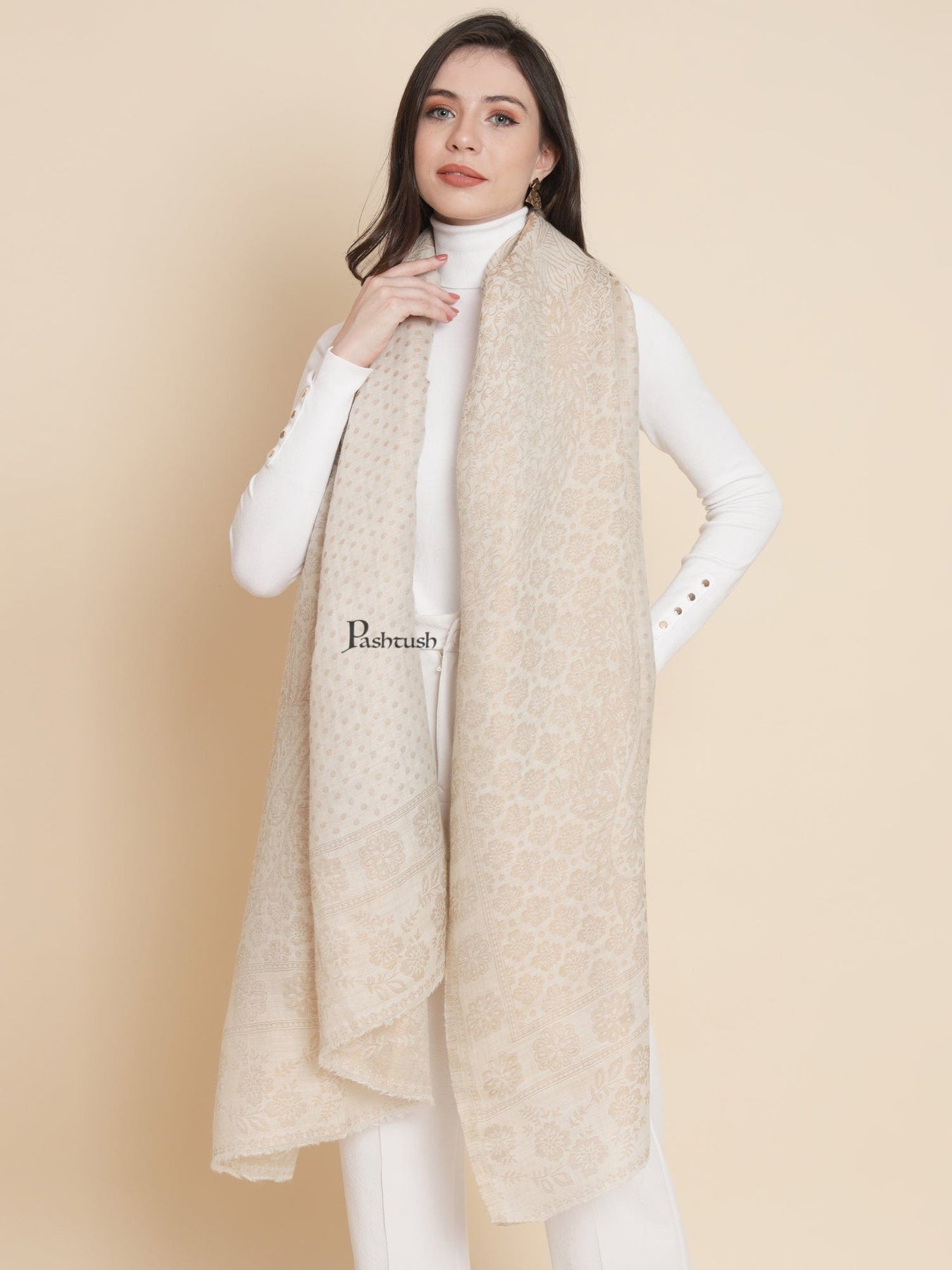Pashtush Womens Extra Fine Wool Shawl, Twilight Reversible Design, Ivory