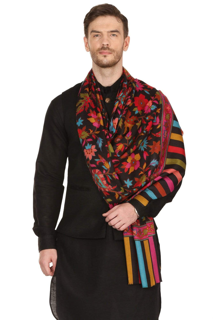 Pashtush Mens Woven Ethnic Stole, Fine Wool