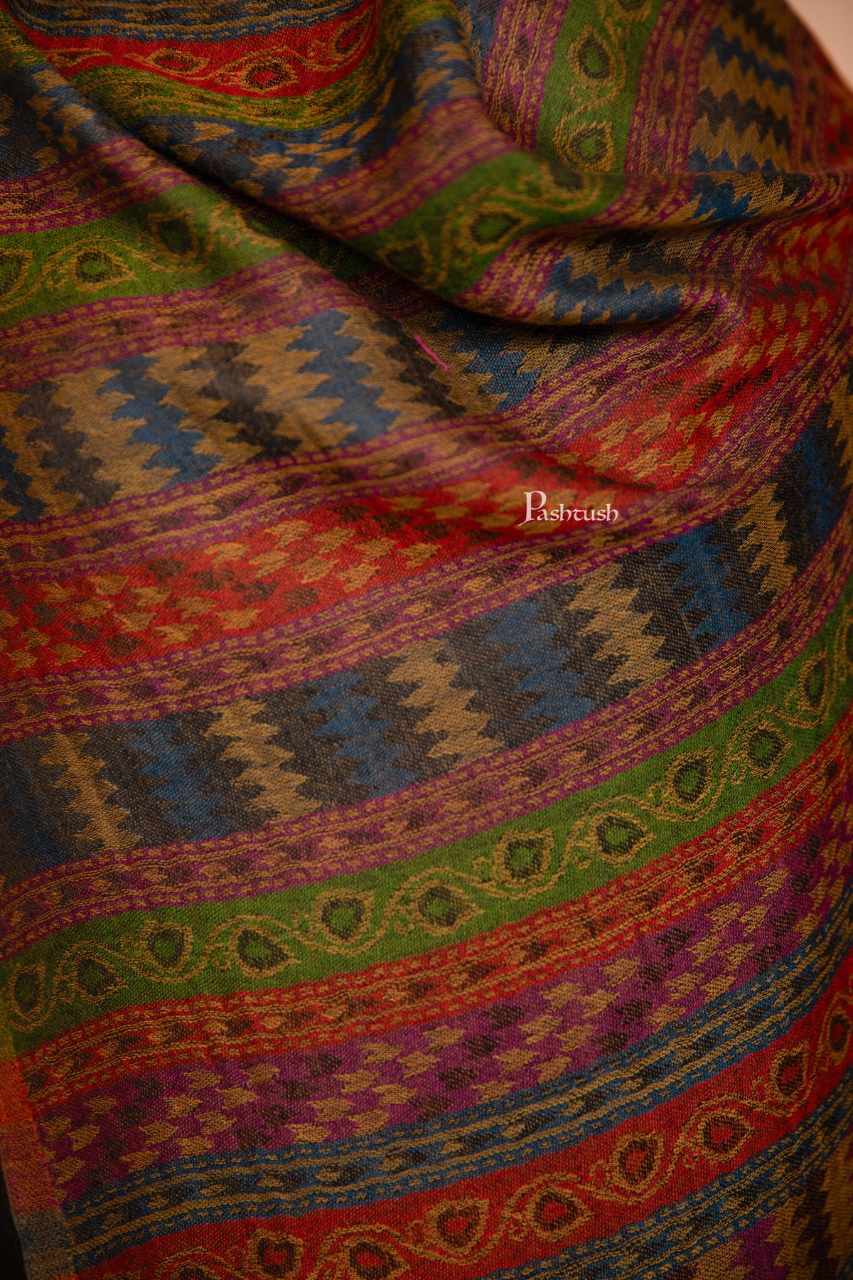 Pashtush India Womens Stoles and Scarves Scarf Pashtush Womens 100% Pure Wool With Woolmark Certificate Stole, Mutli Stripe Design, Blue