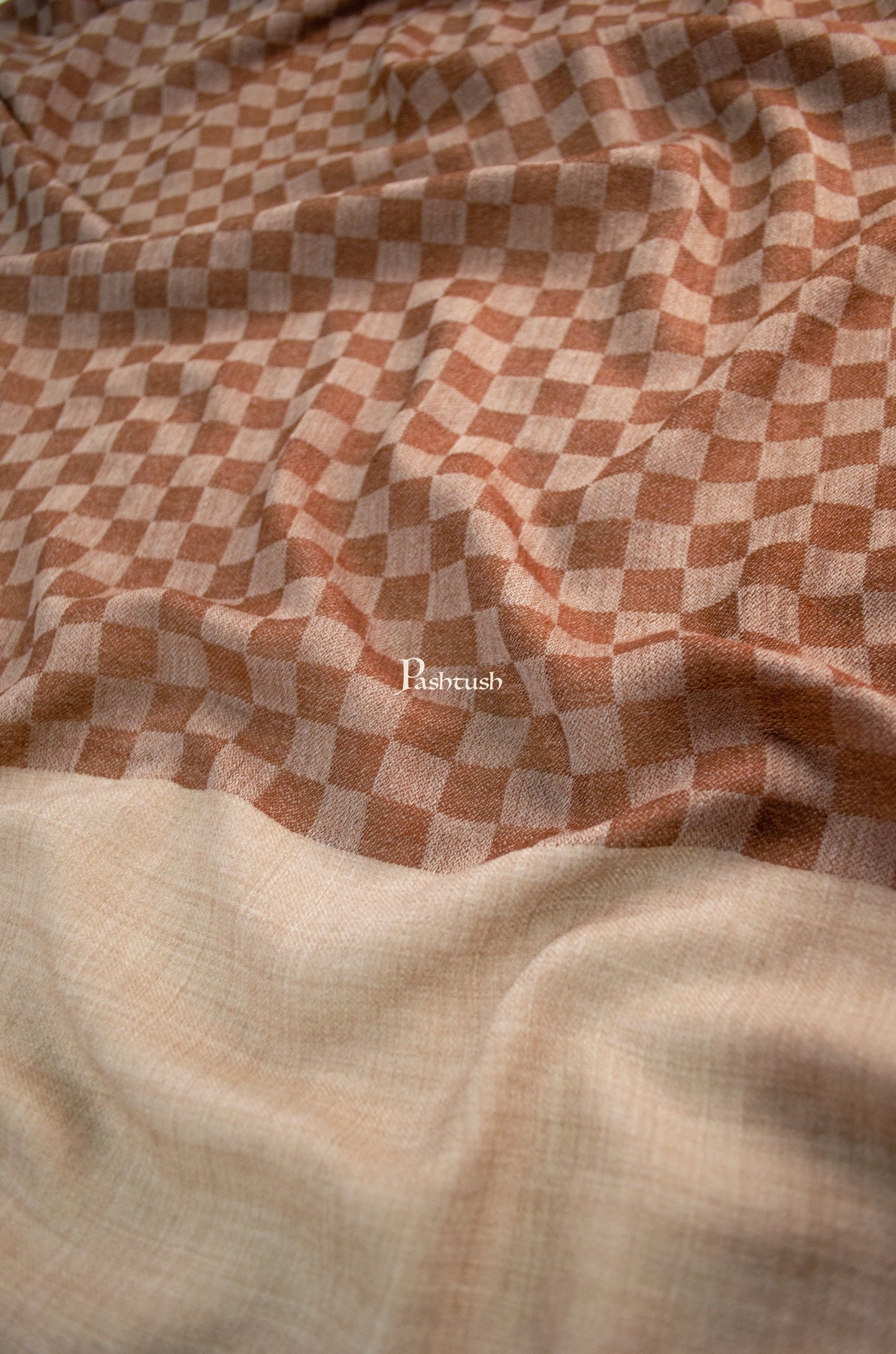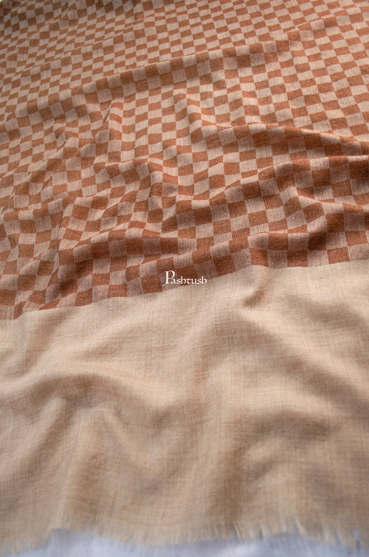 Pashtush Womens Extra Fine Wool Reversible Stole, Checkered Design, Rich Coffee