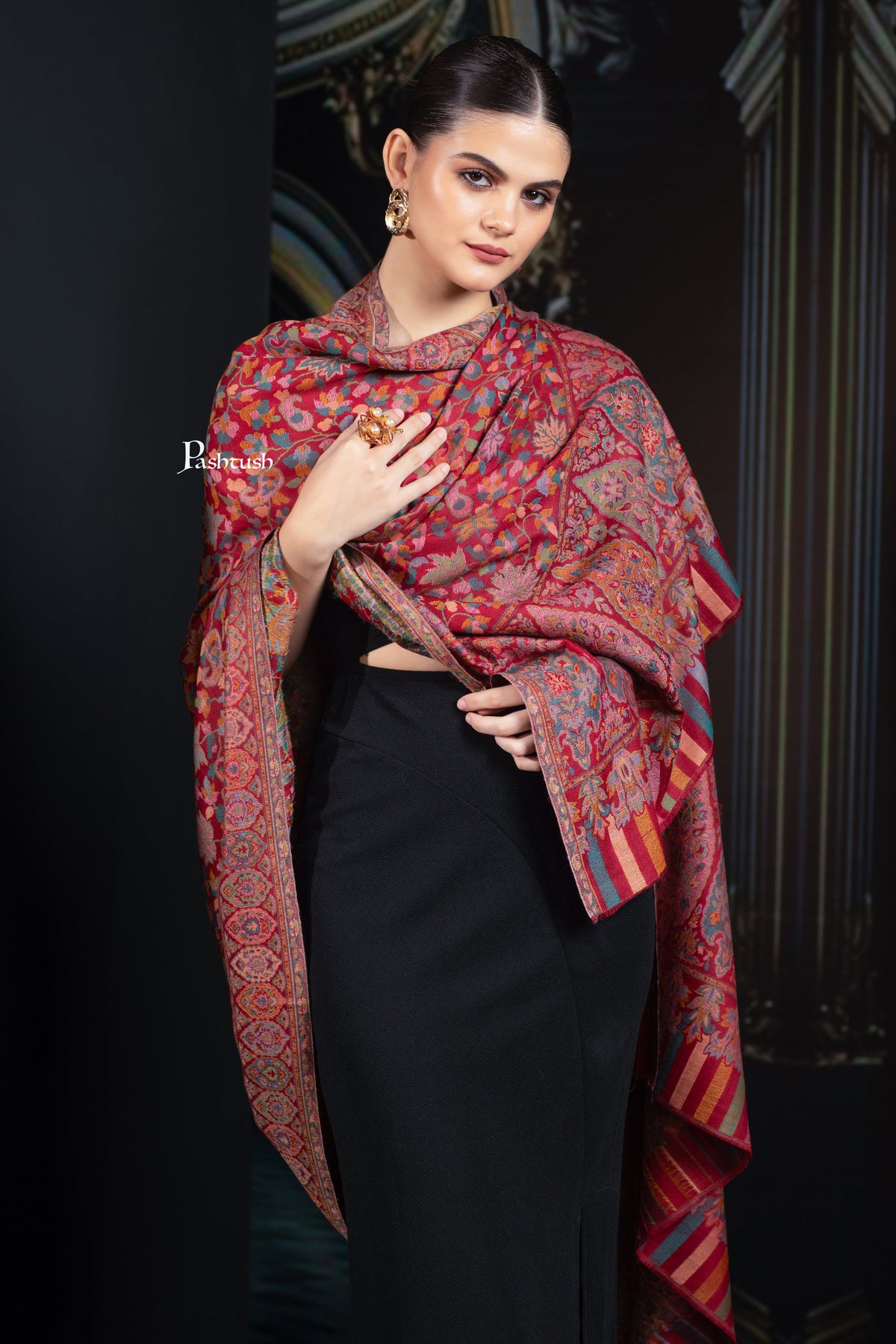 Pashtush India Womens Shawls Pashtush Womens Extra Fine Wool Shawl, Ethnic Weave Jaal Design, Crimson Maroon