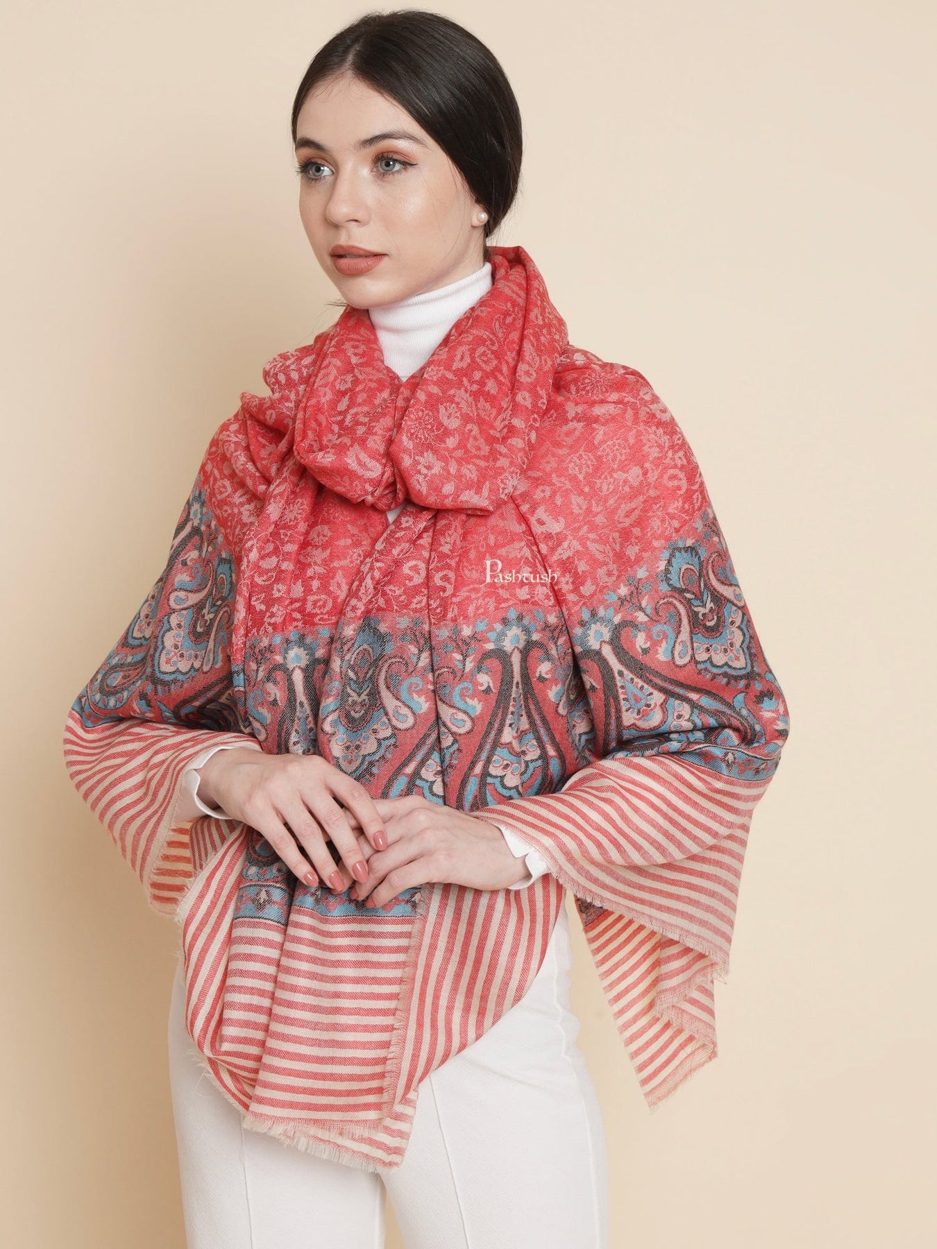 Pashtush India Womens Shawls Pashtush Womens Extra Fine Wool Shawl, Paisley Weave Design, Red