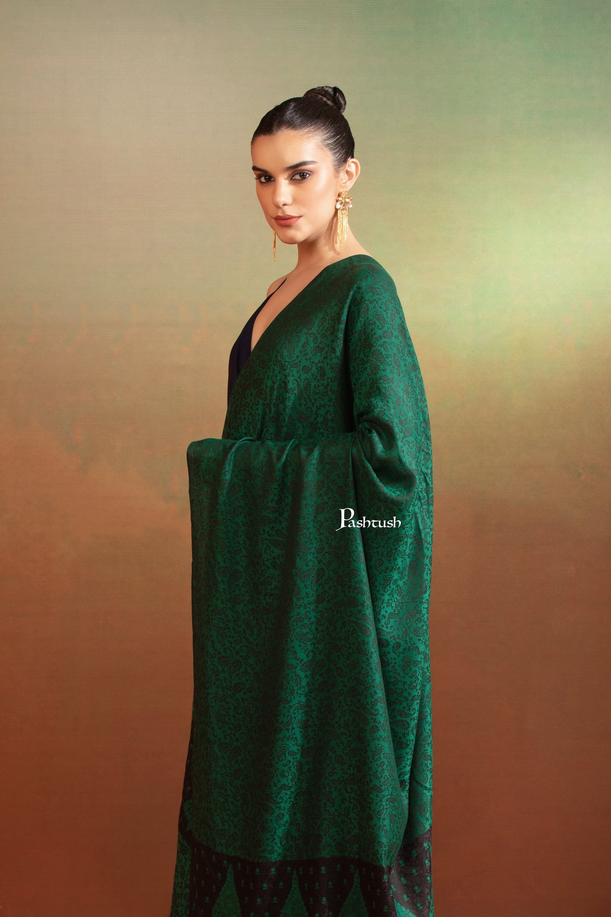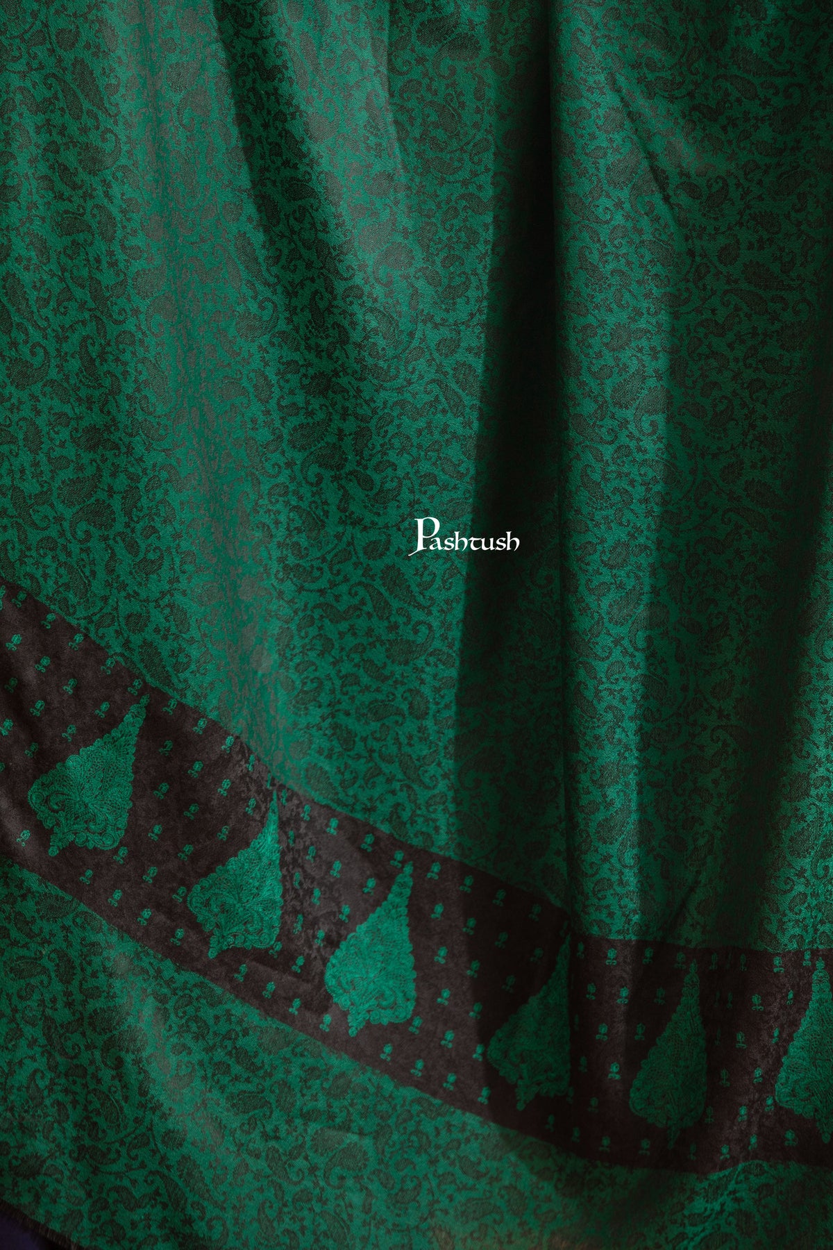 Pashtush Womens Extra Fine Wool Shawl, Pasiley Embroidery Palla Design, Green
