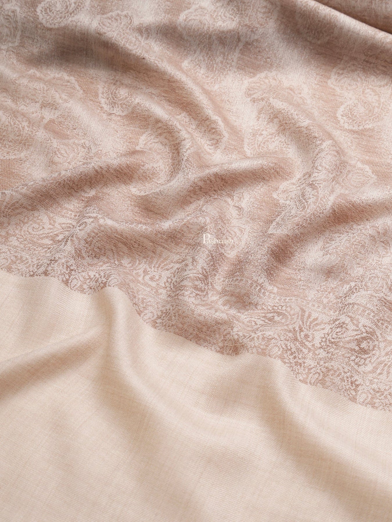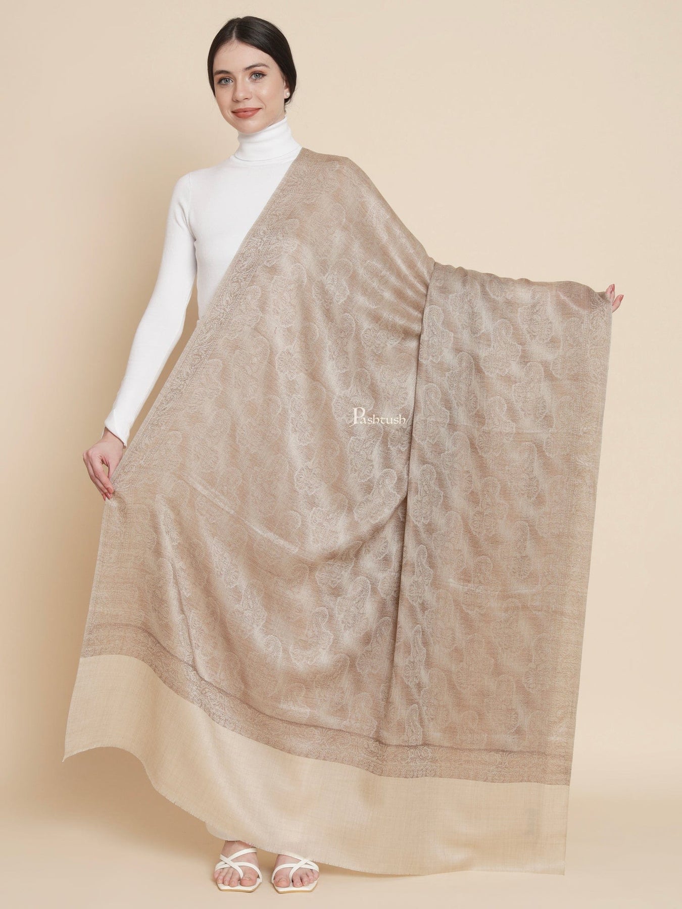 Pashtush womens Extra Fine Wool shawl, PASILEY WEAVE design, Beige