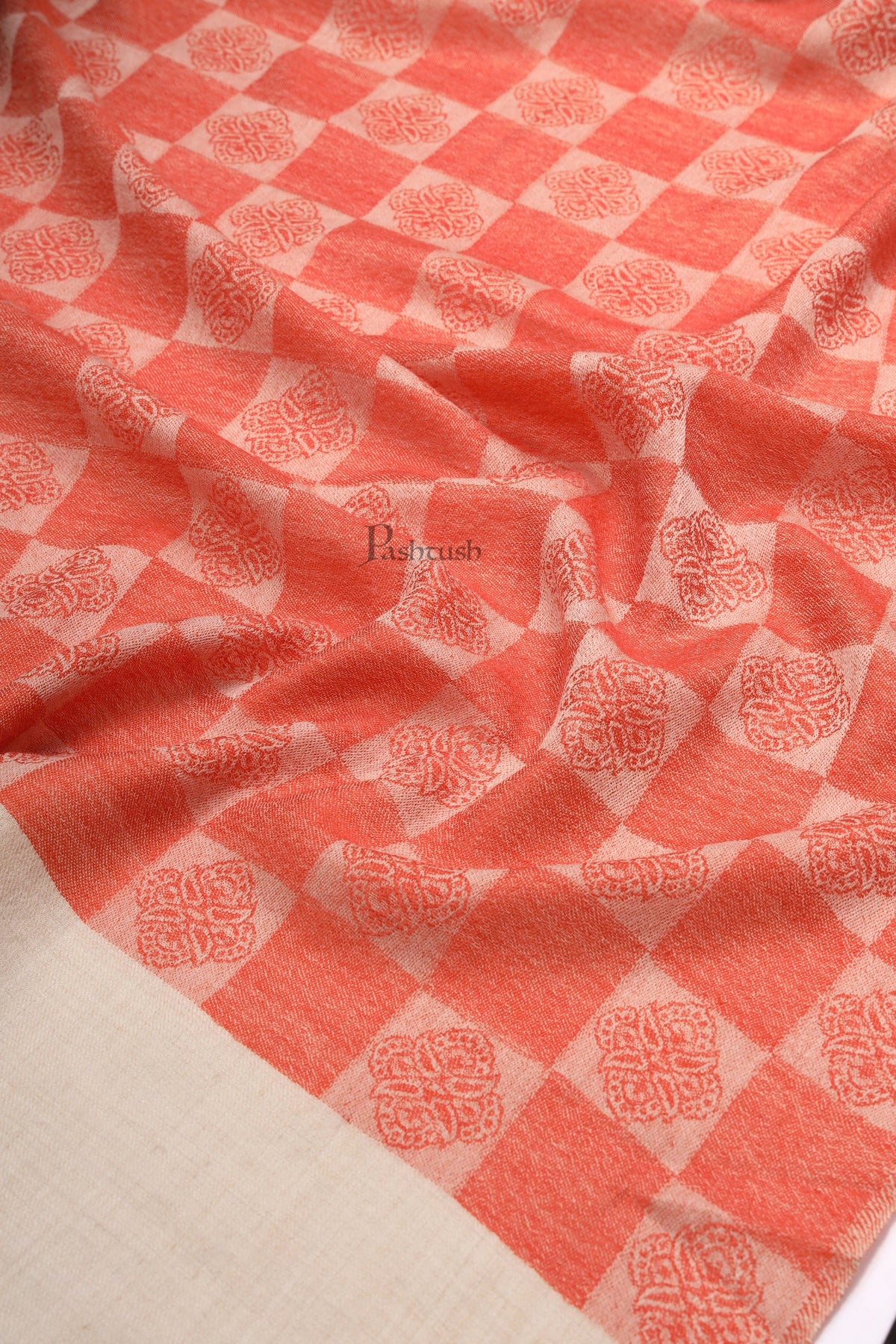 Pashtush Womens Extra Fine Wool Stole, Checkered Design, Orange