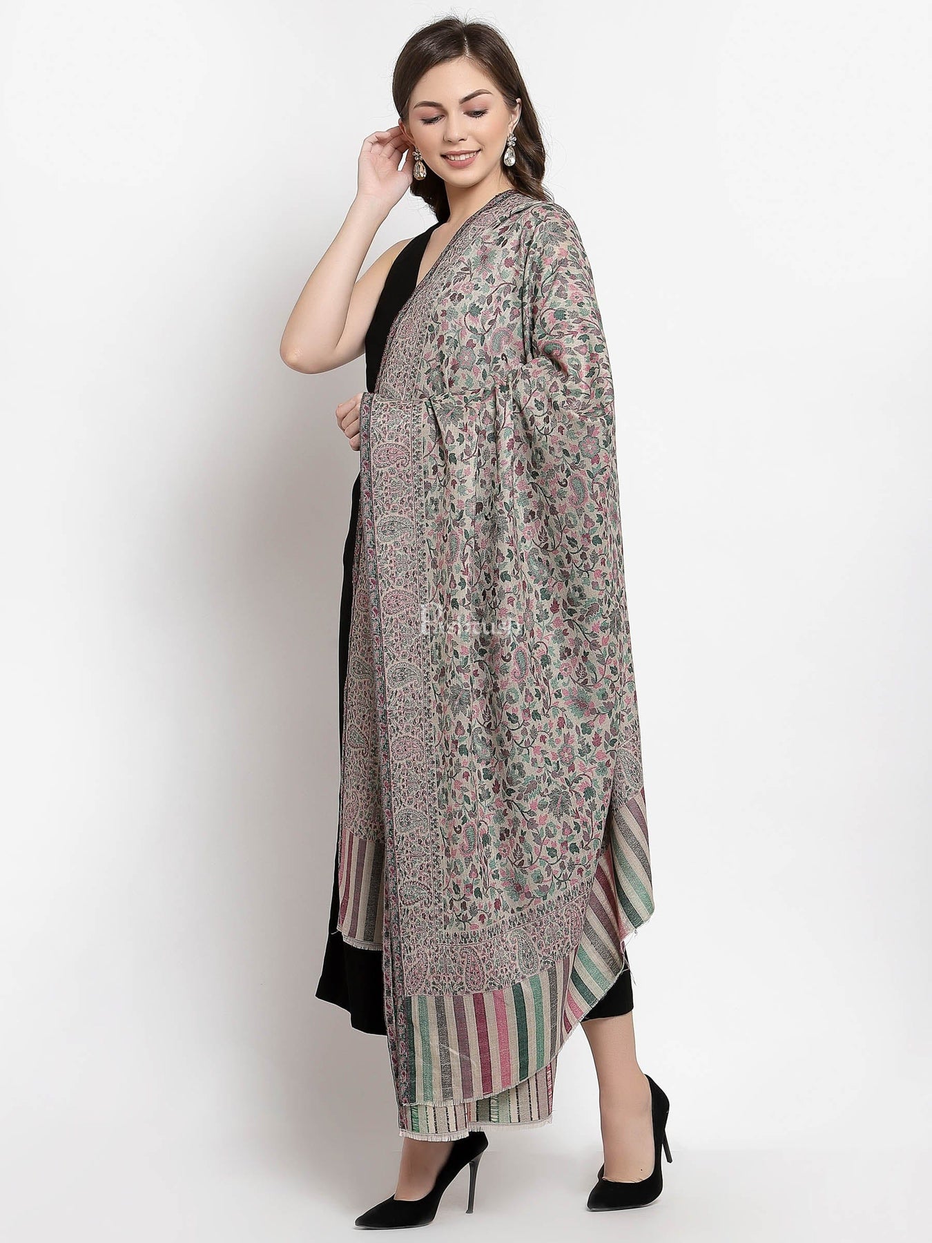 Pashtush Womens Fine Wool Ethnic Weave Shawl, Soft And Warm, Beige