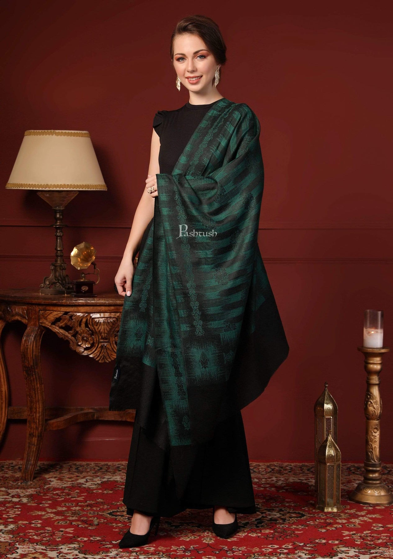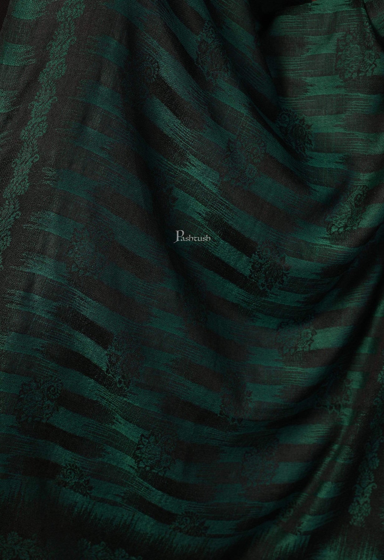Pashtush India 70x200 Pashtush Women's Fine Wool Stole, Ikkat Design, Azure Green