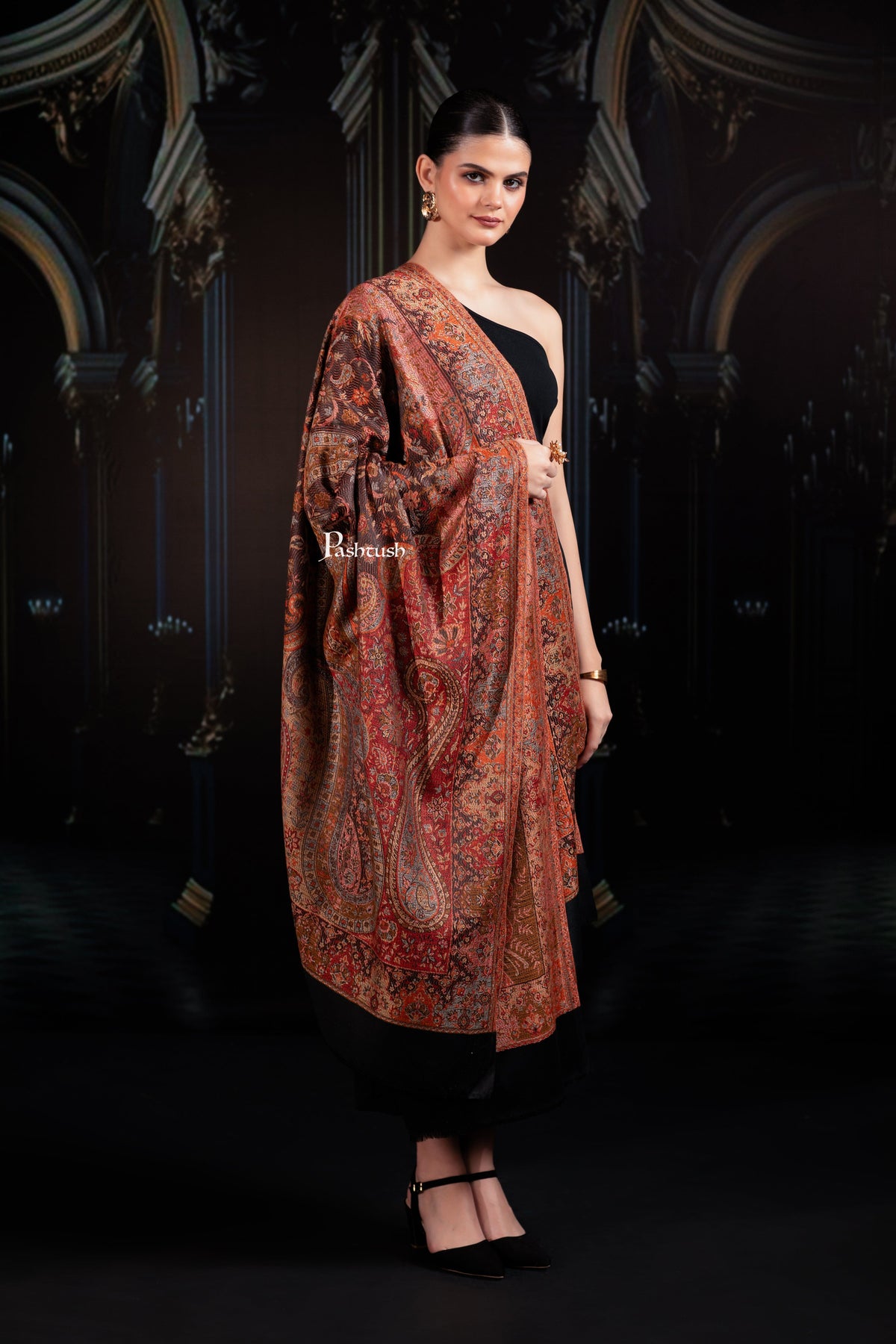 Pashtush India Womens Shawls Pashtush Womens Jamawar Shawl, Ethnic Paisley Design, Black