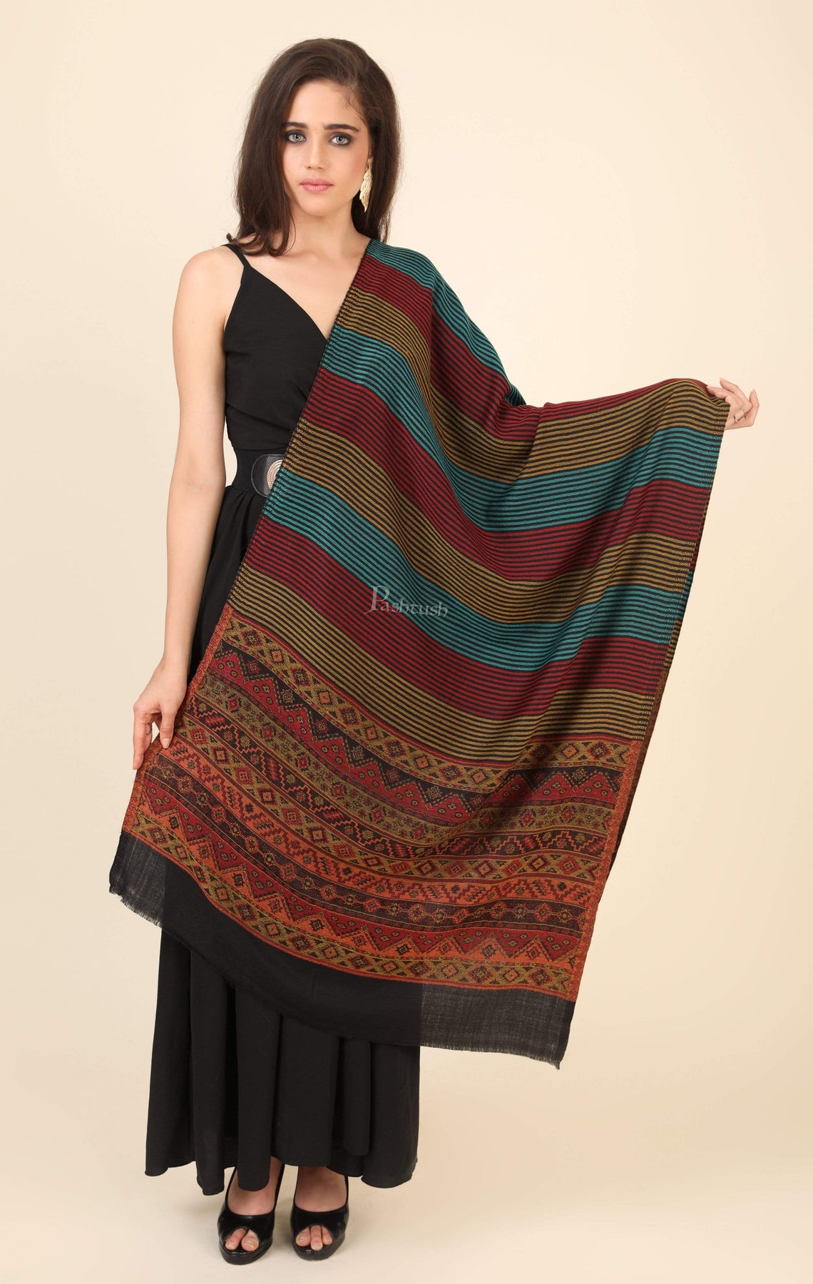 Pashtush Women'S Reversible Stole, Aztec Weave Scarf, Black