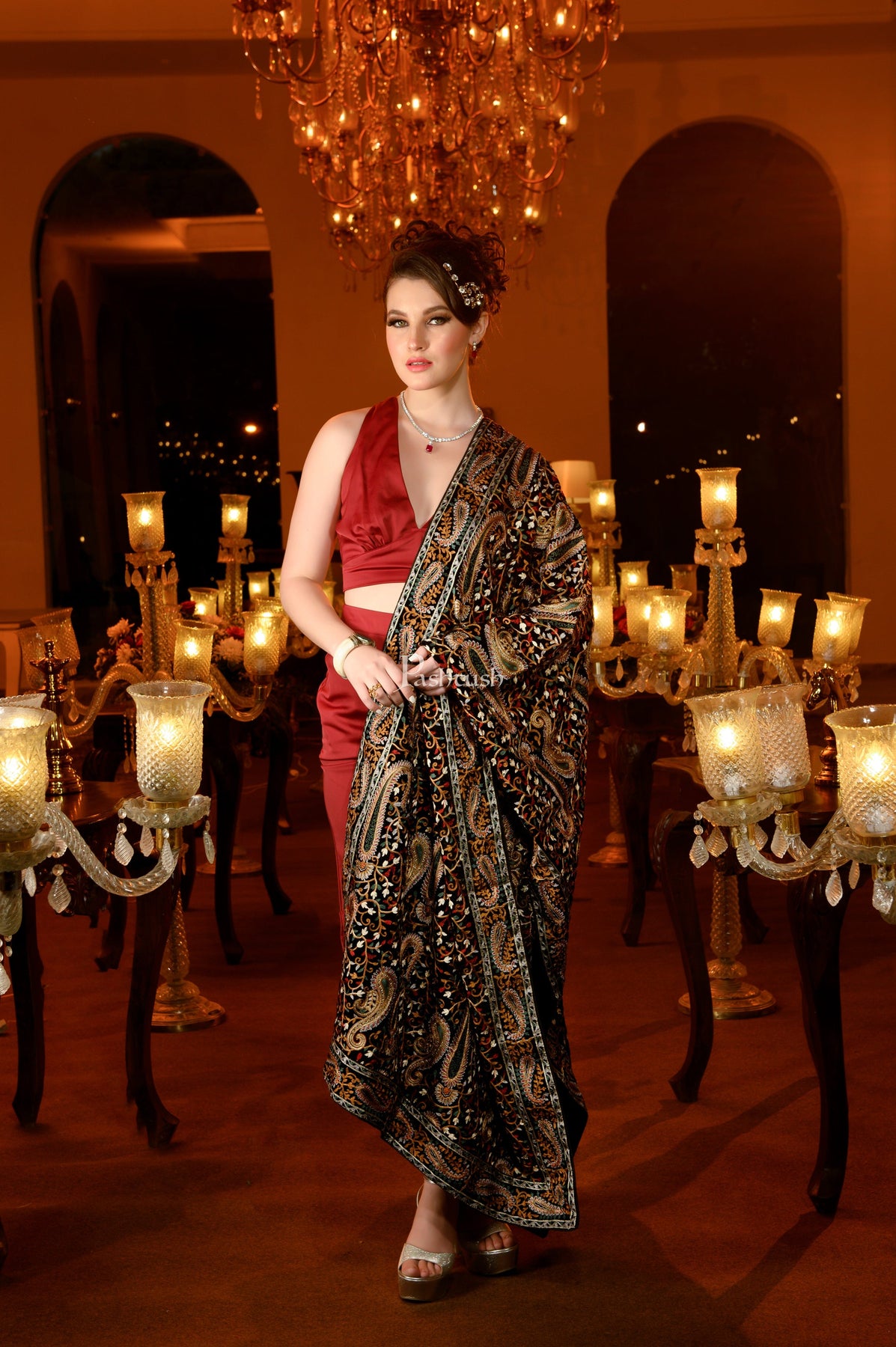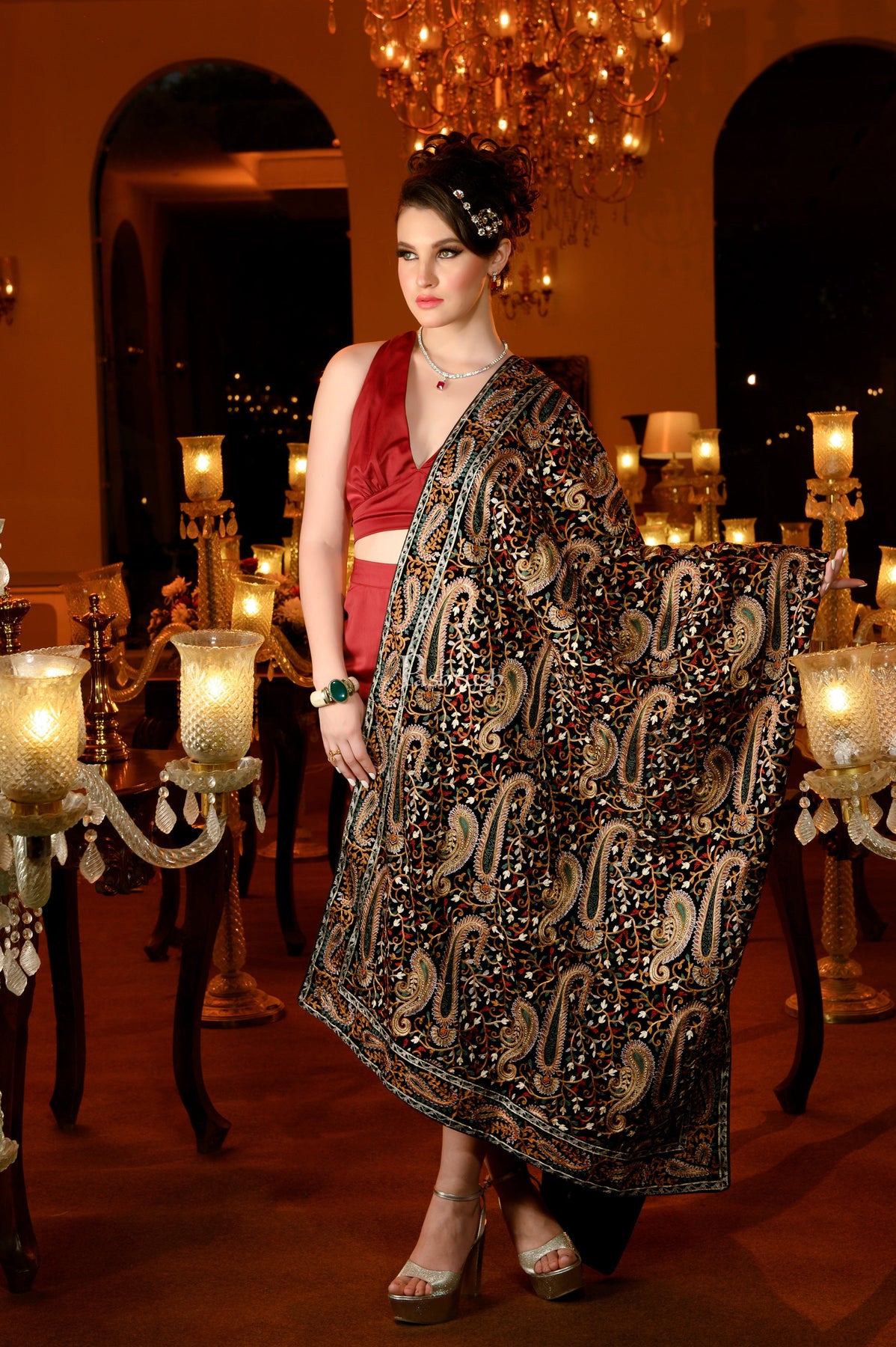 Pashtush Womens Velvet Dupatta, Bridal Collection, With Silky Embroidery