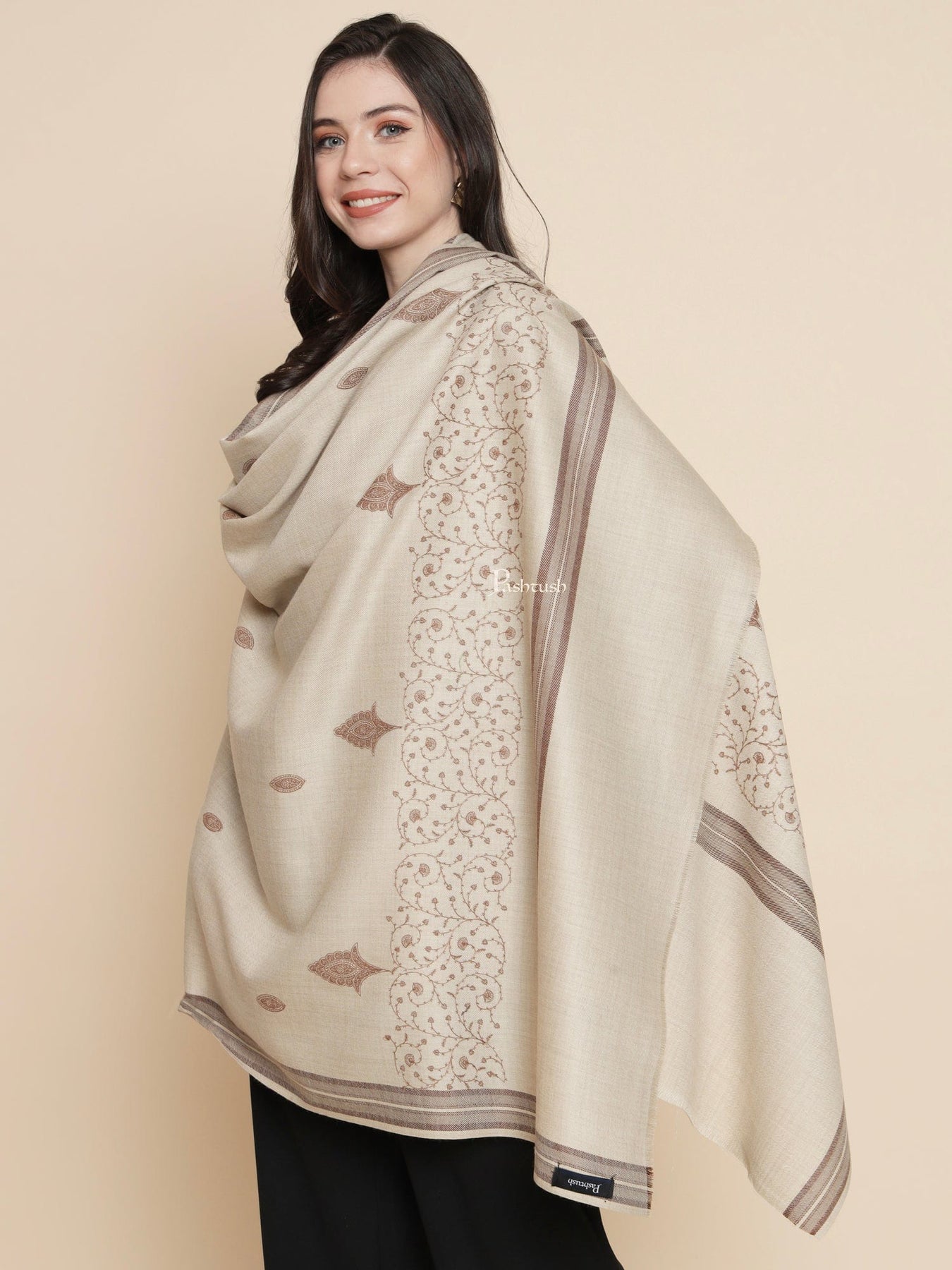 Pashtush Womens Womens, Fine Wool, Bootey Kashmiri Embroidery, Beige