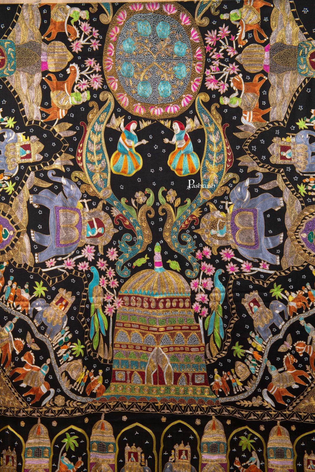 Pashtush Pure Pashmina “Royal Caravan” Tilla & Aari Embroidered Shawl, A Kashmiri Courtly Tapestry