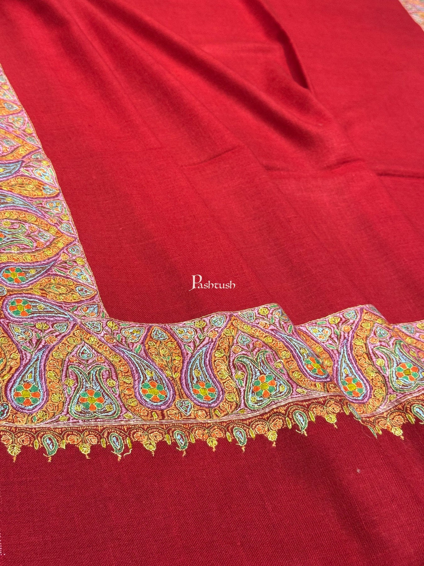 Pashtush Womens Pure Pashmina Shawl, Hand Painted And Embroidered Kalamkari Palla Design, Maroon