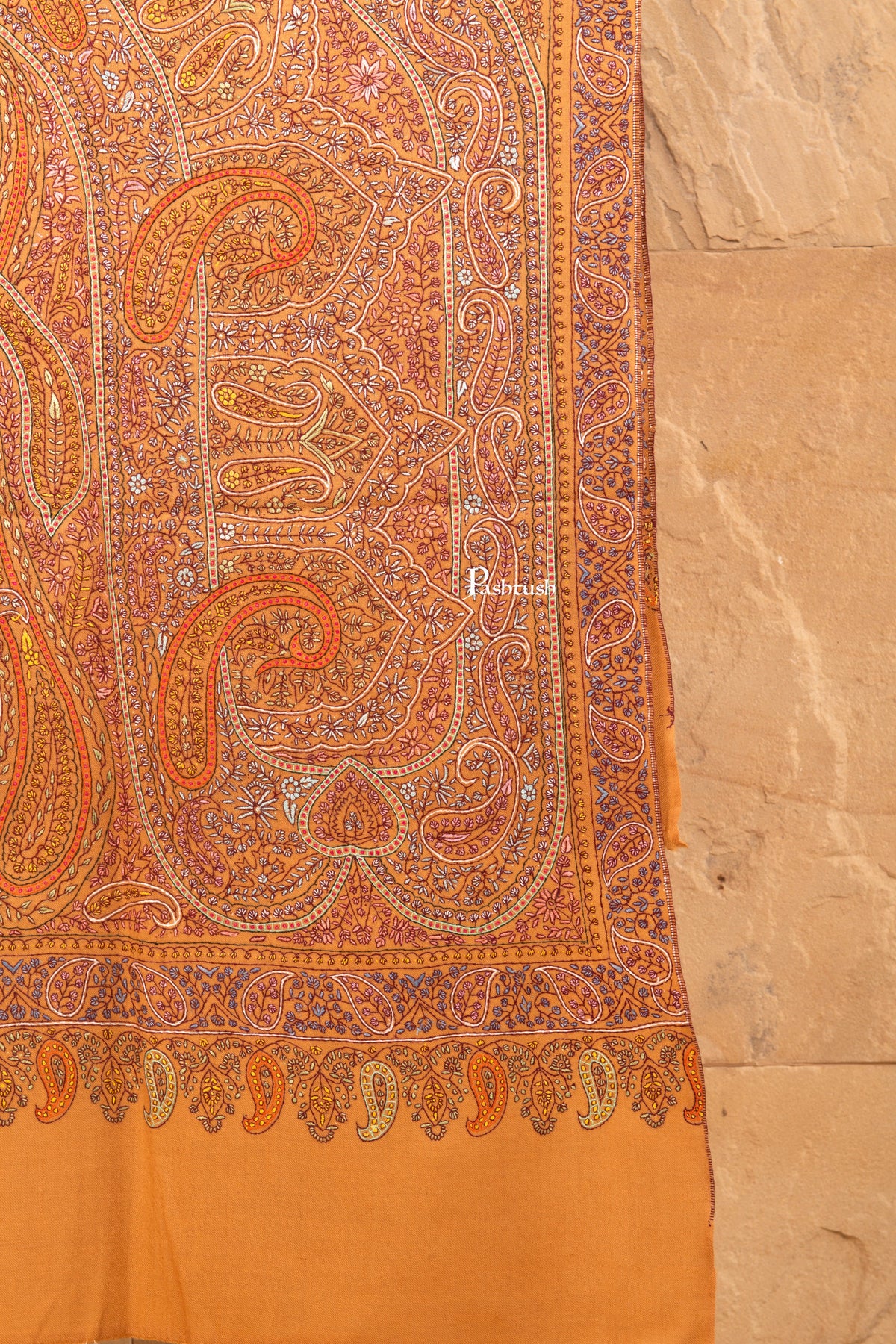 Pashtush Pure Pashmina Shawl for Women, Papier-mâché Kashmiri Embrodiery, Peach