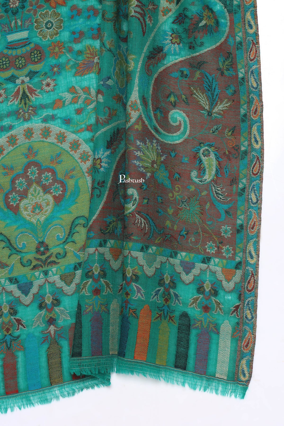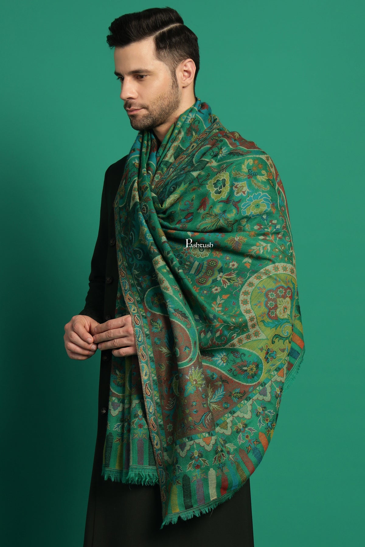 Pashtush Mens 100% Pure Wool With Woolmark Certificate Stole, Paisley Design, Green