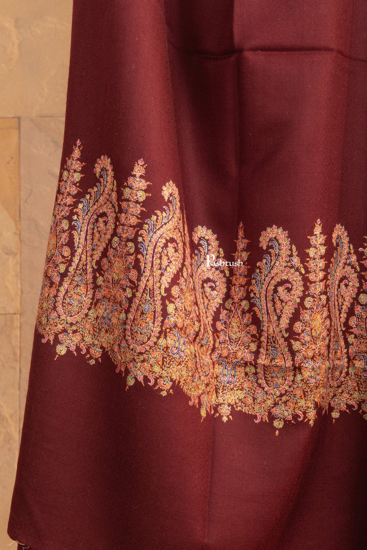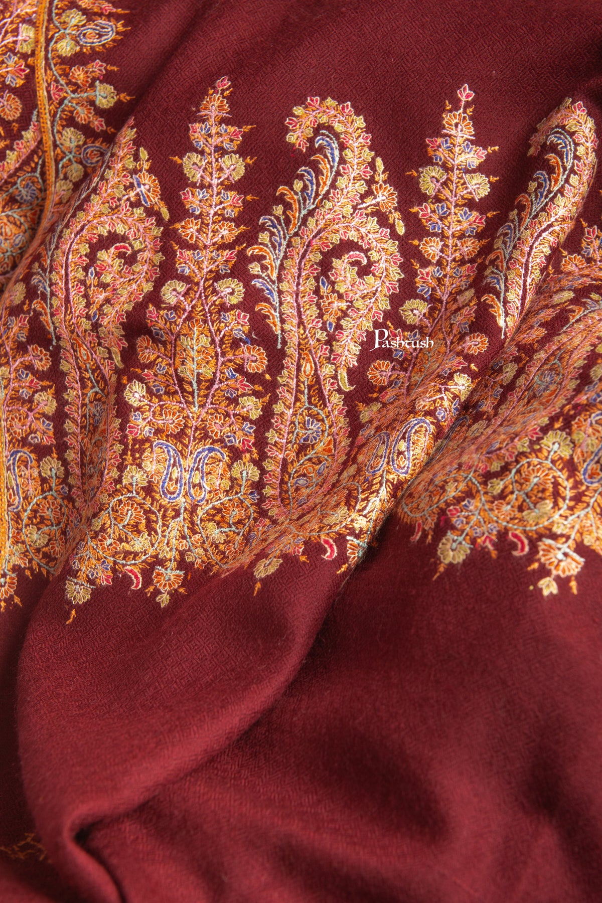Pashtush Pure Pashmina Shawl, With Hand Embroidery Palla, Maroon
