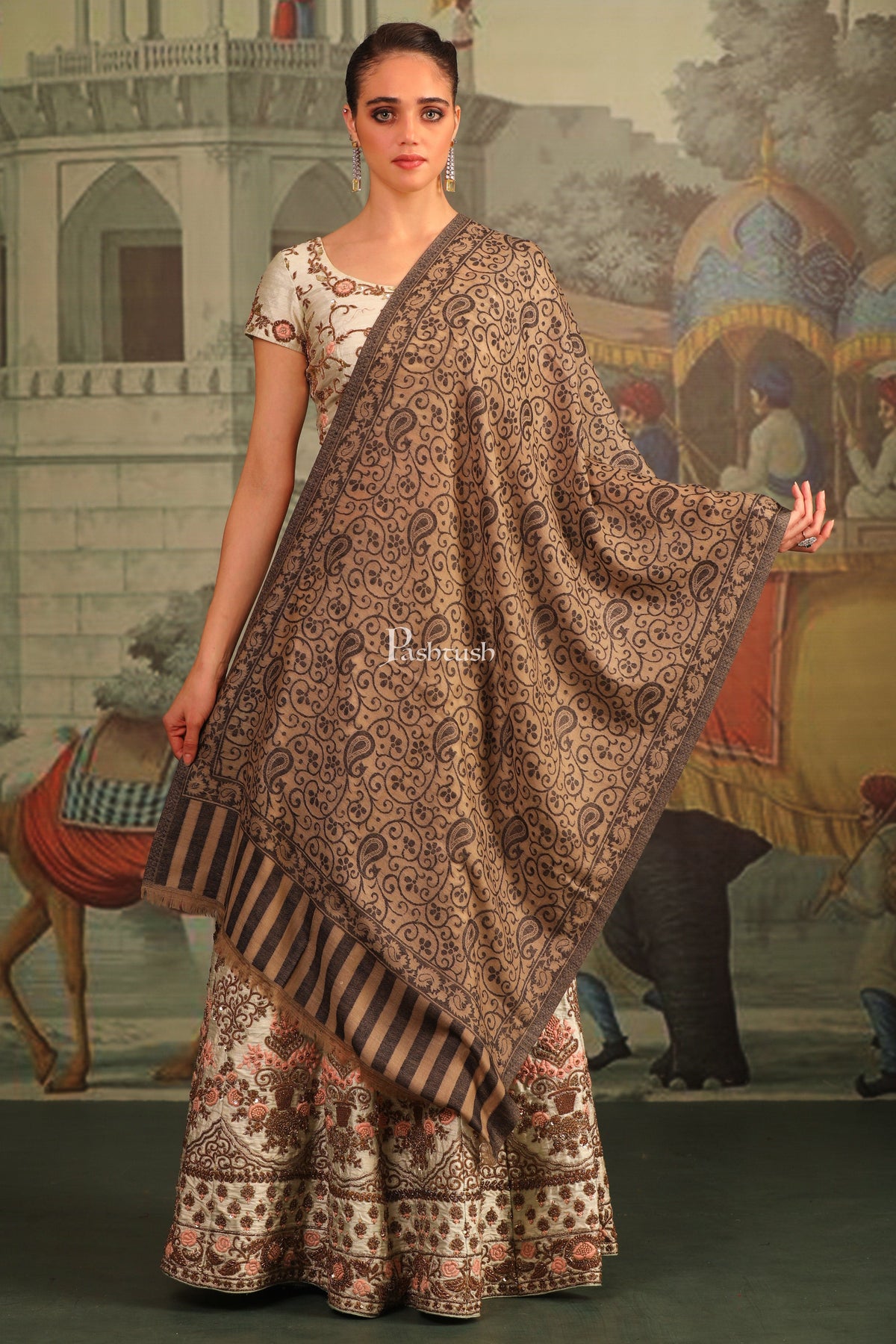 Pashtush Womens 100% Pure Wool With Woolmark Certificate Stole, Paisley Weave Design, Grey