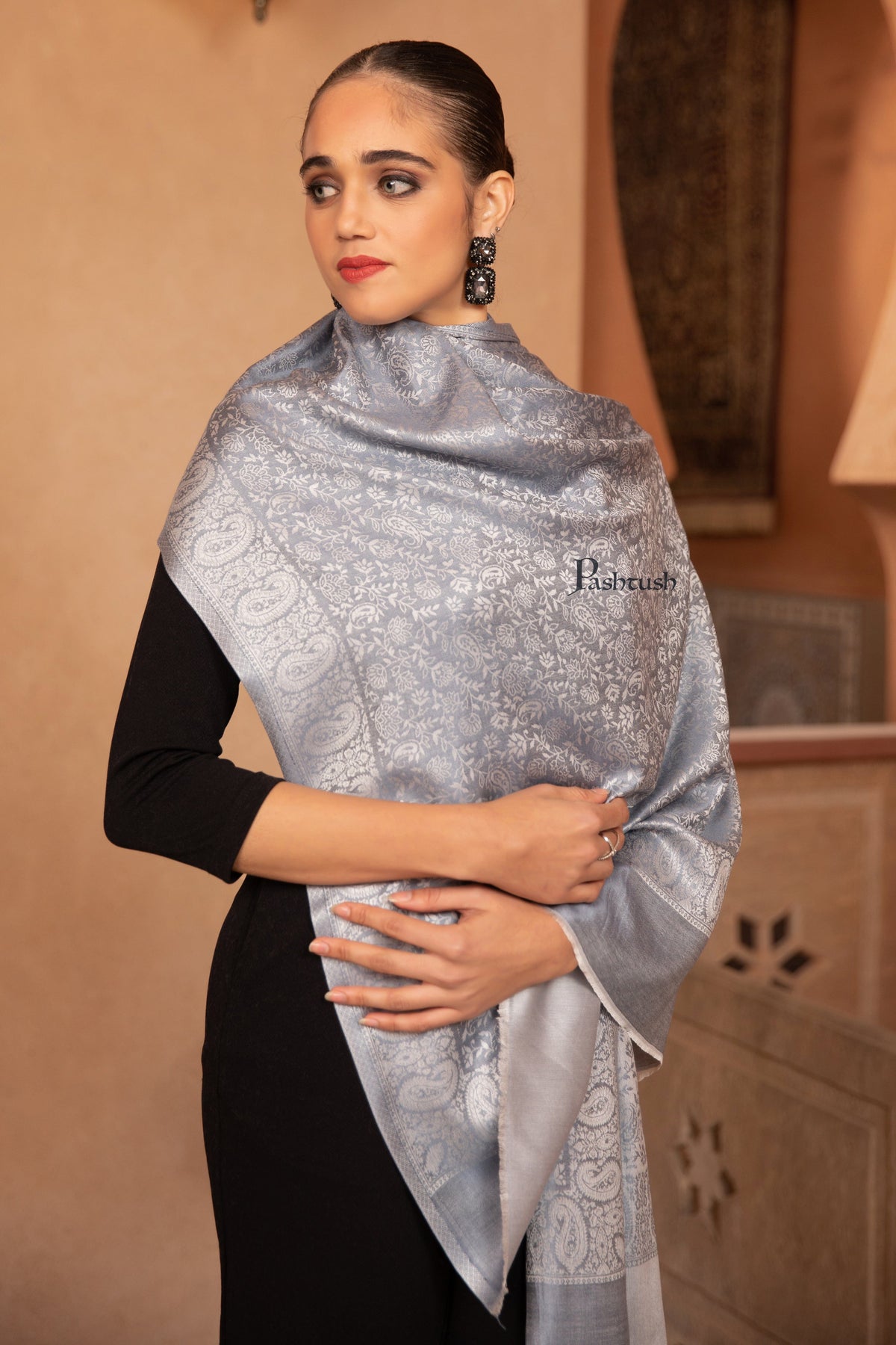 Pashtush Womens Bamboo Stole, Paisley Design, Dark Grey