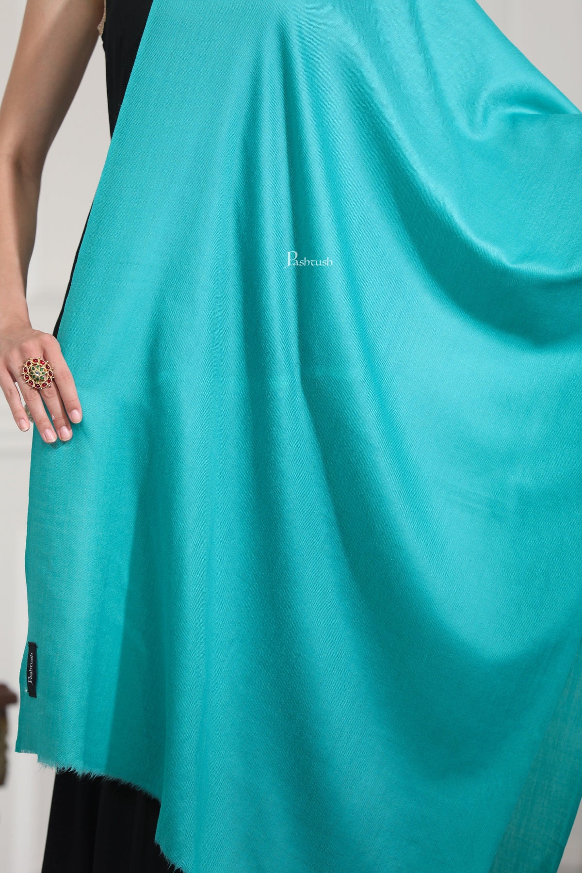 Pashtush Womens Extra Fine Wool Stole, Solid Plain Design, Arabic Sea Blue