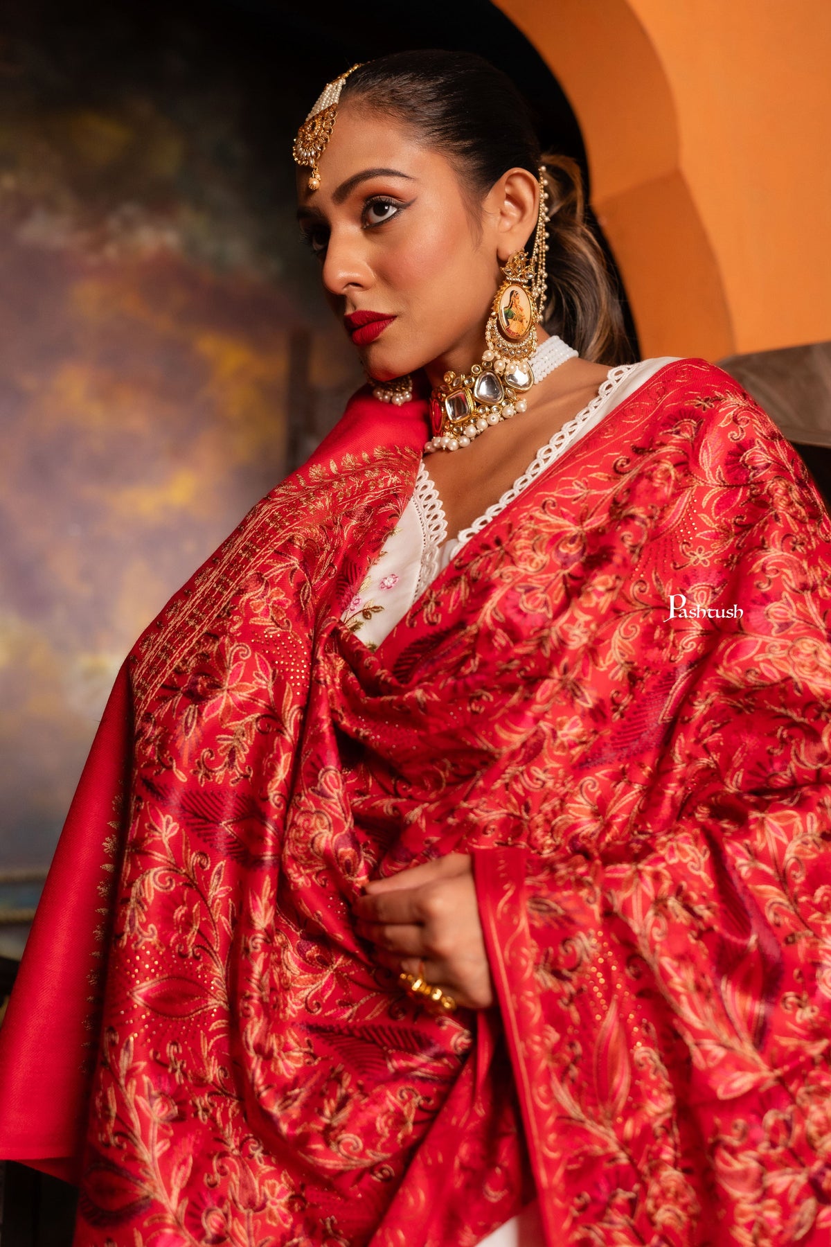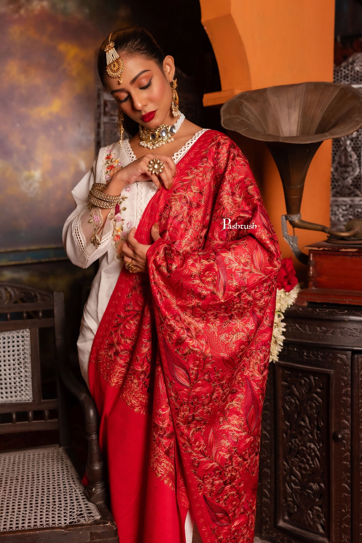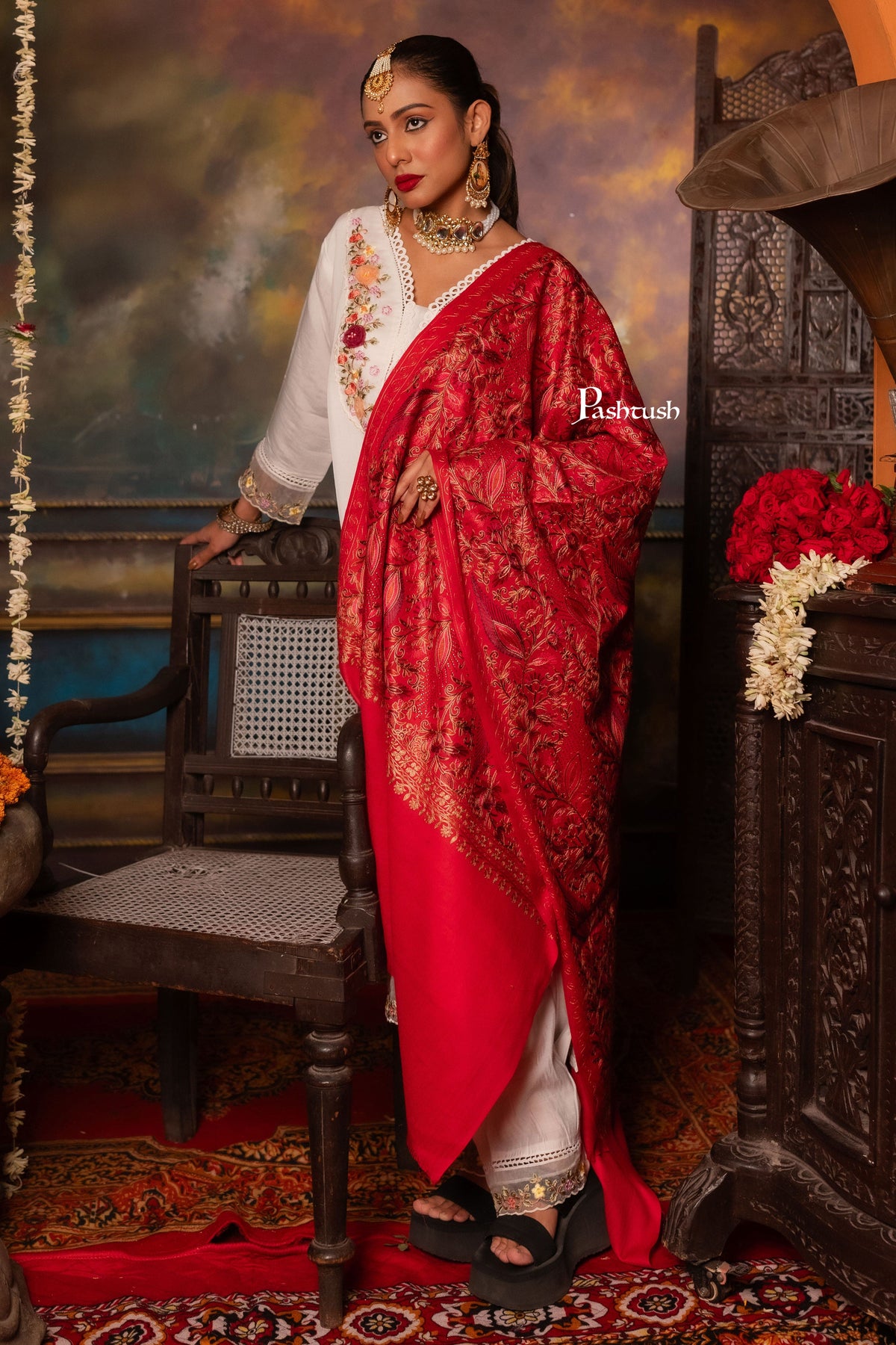 Pashtush Womens Fine Wool Stole, Nalki Embroidery Design, Maroon