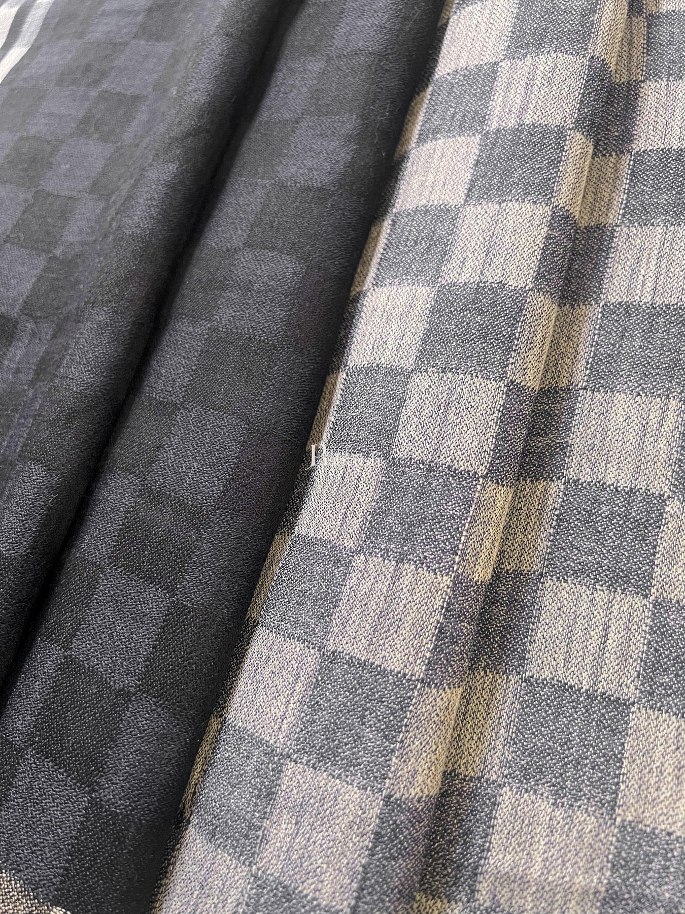 Pashtush Womens Stole, Extra Fine Silk Wool, Checkered Weave Twin Coloured, Black and Ivory