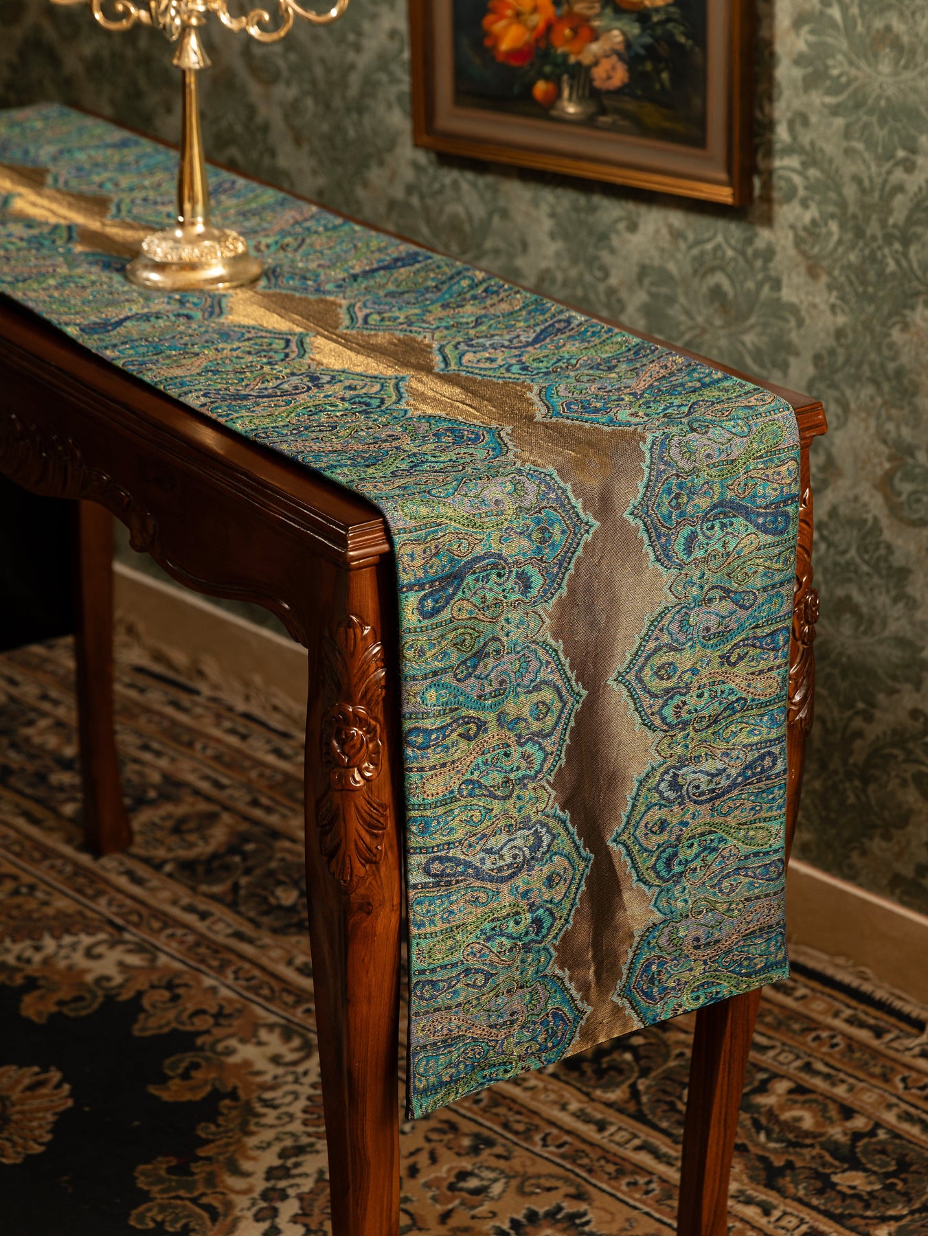 Pashtush Luxury Table Runner, Twilight Collection, Arabic Sea Blue