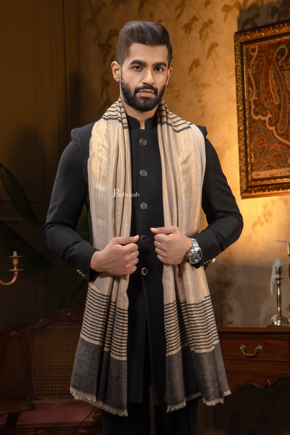 Pashtush Mens Extra Fine Wool Stole, Stripe Twilight Design, Black