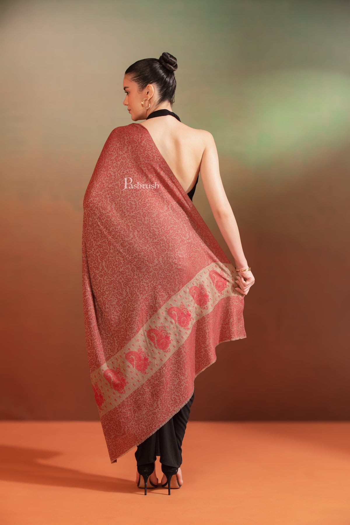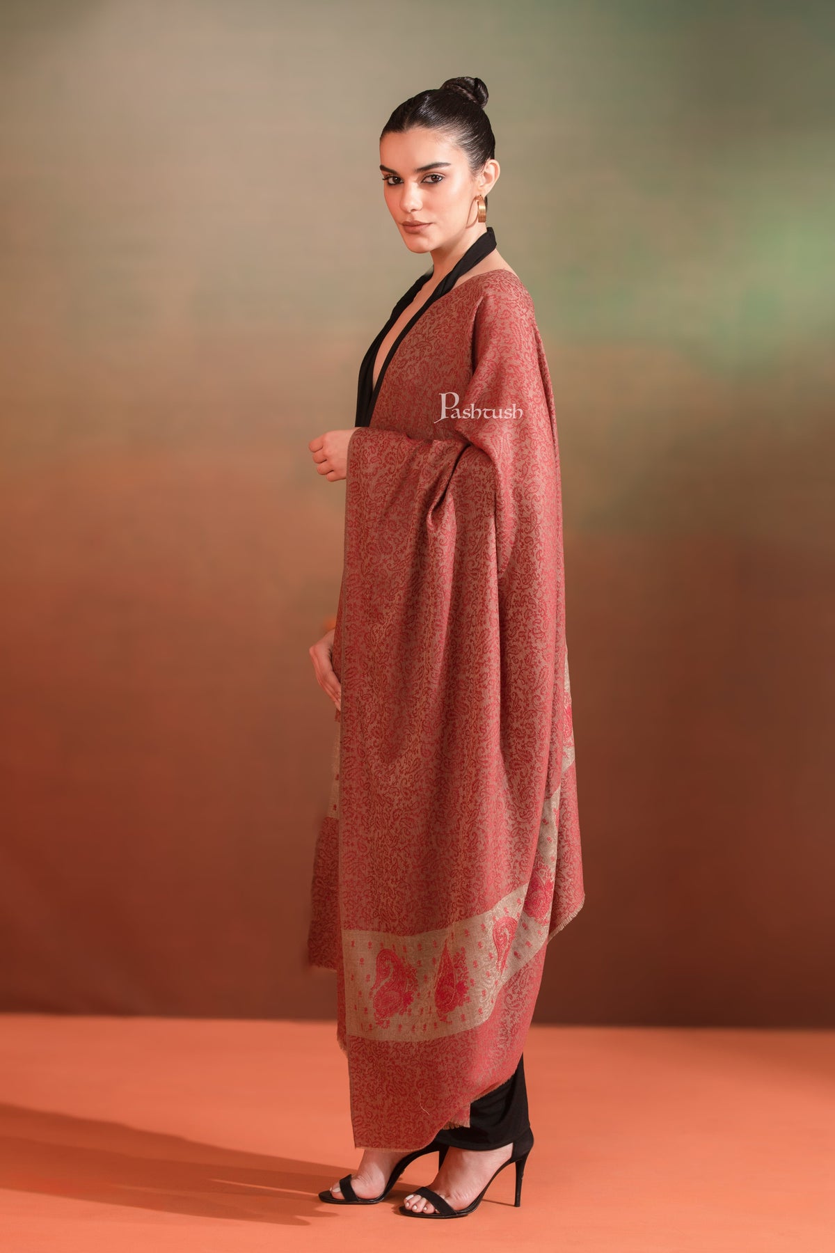 Pashtush Extra Fine Wool Shawl, Tone On Tone Palla Embroidery Design, Rose