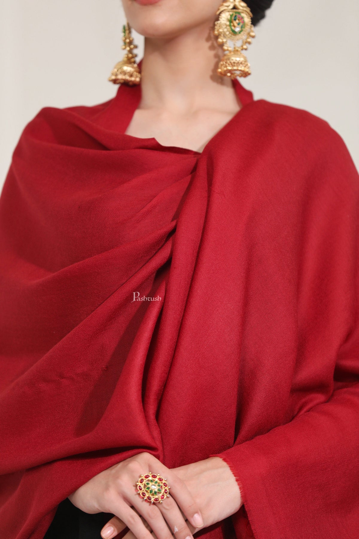 Pashtush Womens Extra Fine Wool Stole, Solid Plain Design, Maroon