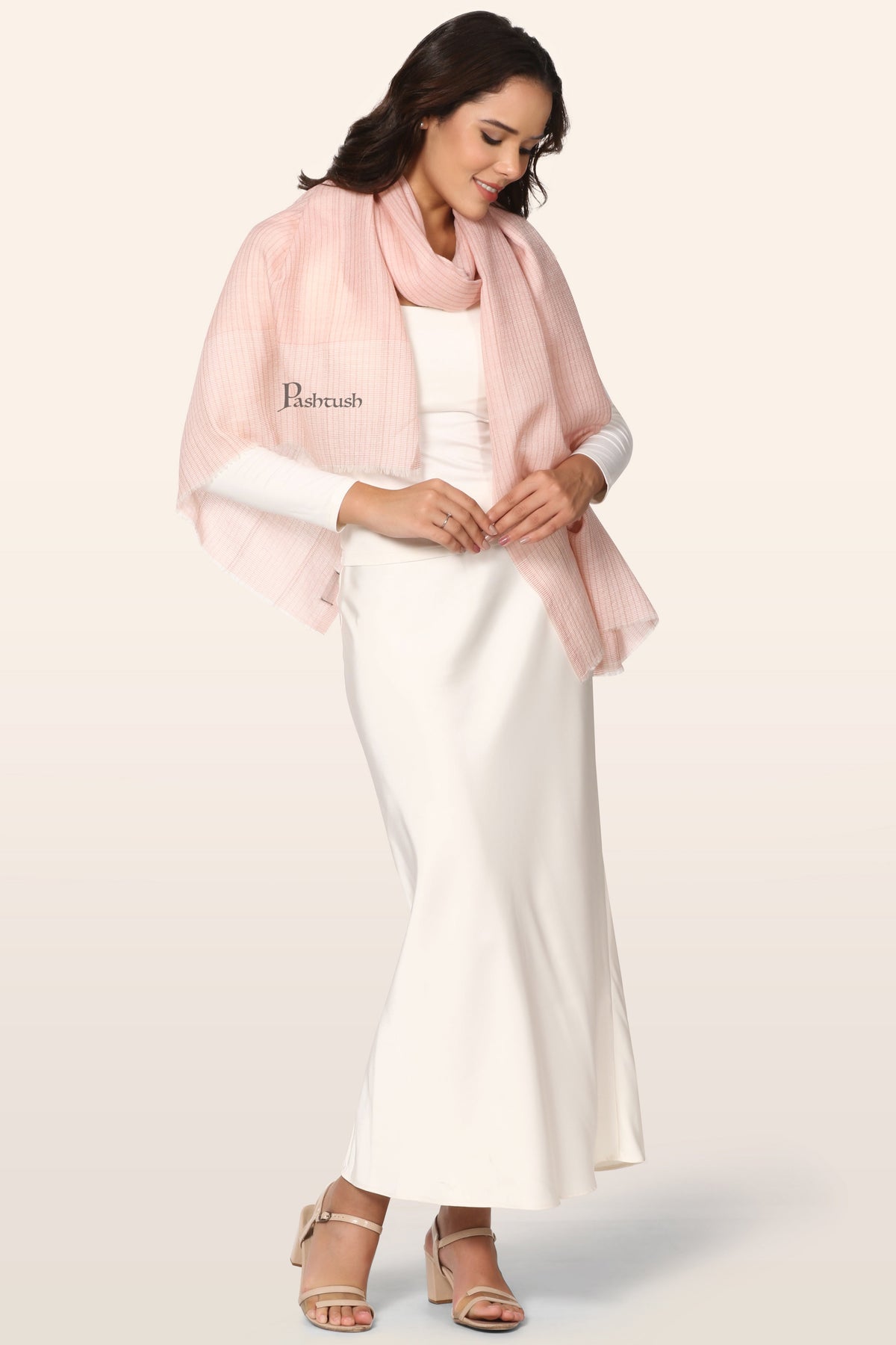 Pashtush Womens Extra Fine Wool Stole, Stripe Weave Design, Pink