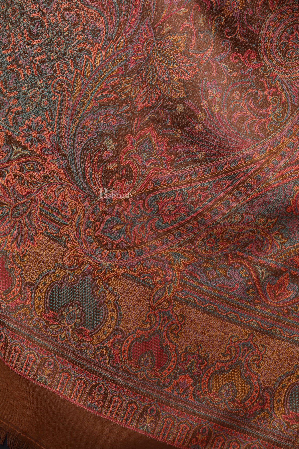 Pashtush Womens Faux Pashmina Stole, Pasiley Design, Brown