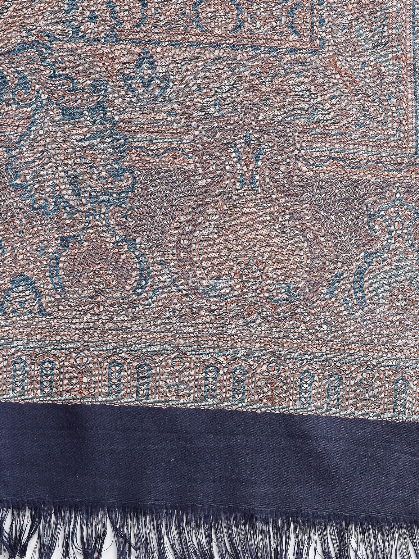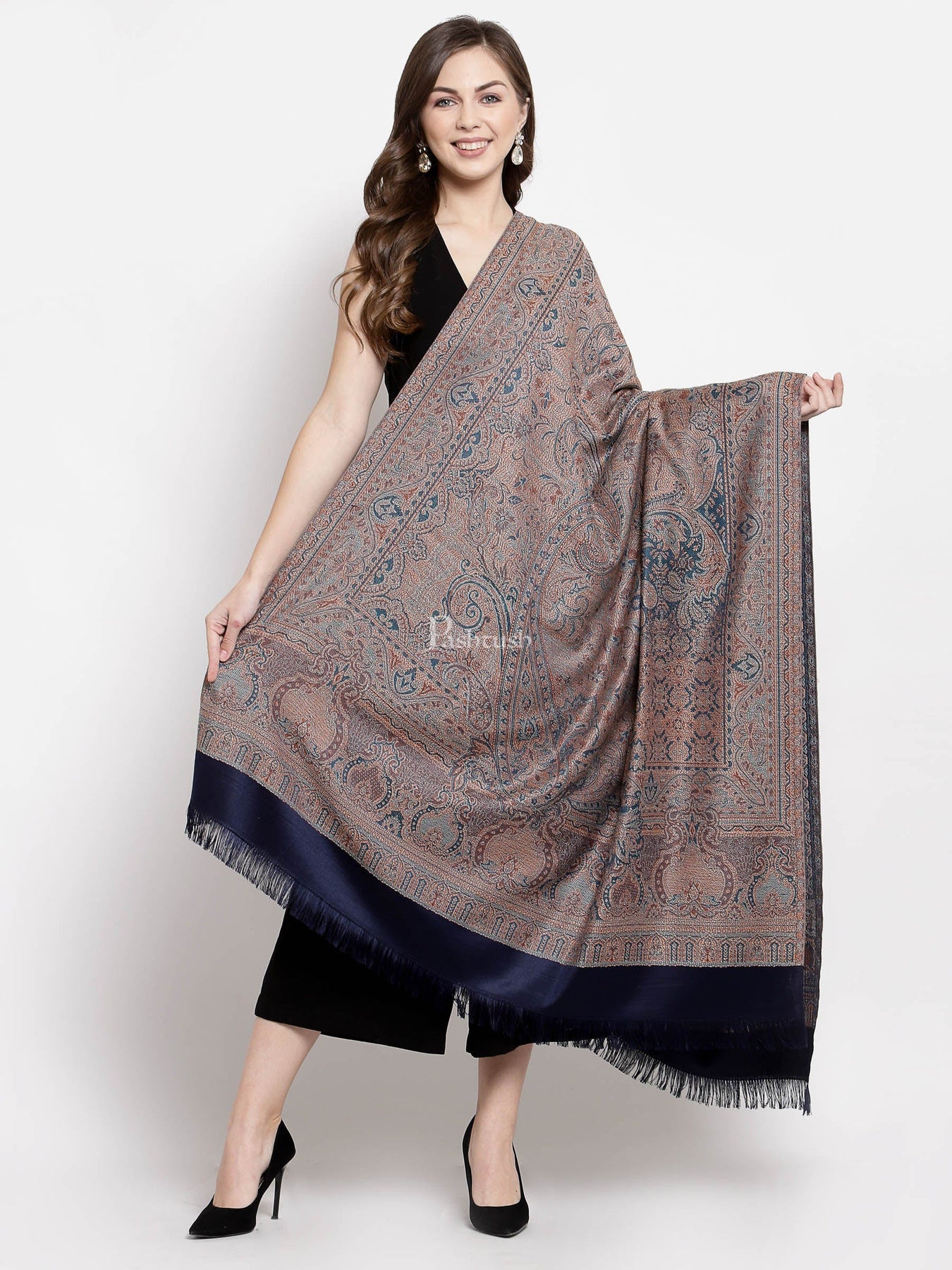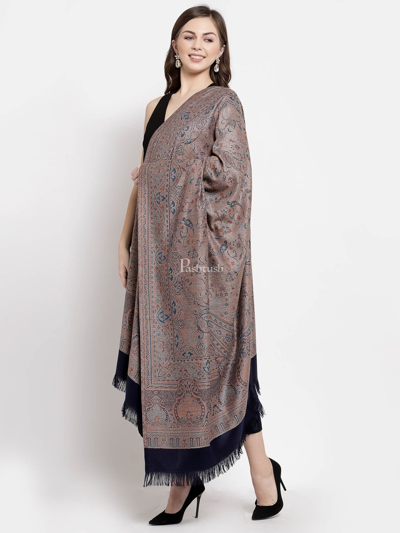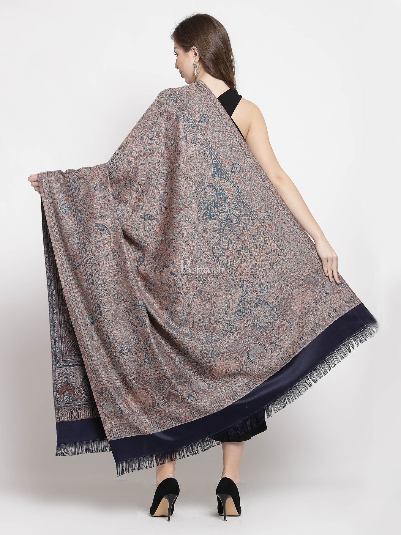 Pashtush Women'S Jamawar Shawl, Faux Pashmina, Navy Blue, Reversible